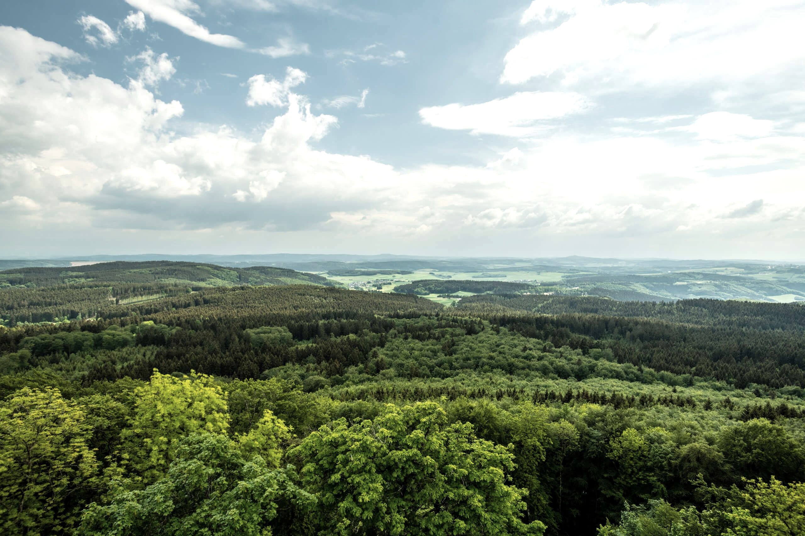 Auf dem Dach der Eifel: Schon von Weitem ist der höchste Berg der Eifel zu sehen: der 747 Meter hohe, tertiäre Vulkan Hohe Acht. Vor zig Millionen Jahren maß die Basaltkuppel der Hohen Acht viele Hunderte Meter mehr. Sie ist aber noch immer der höchste Punkt der Eifel und der dritthöchste Berg von Rheinland-Pfalz.