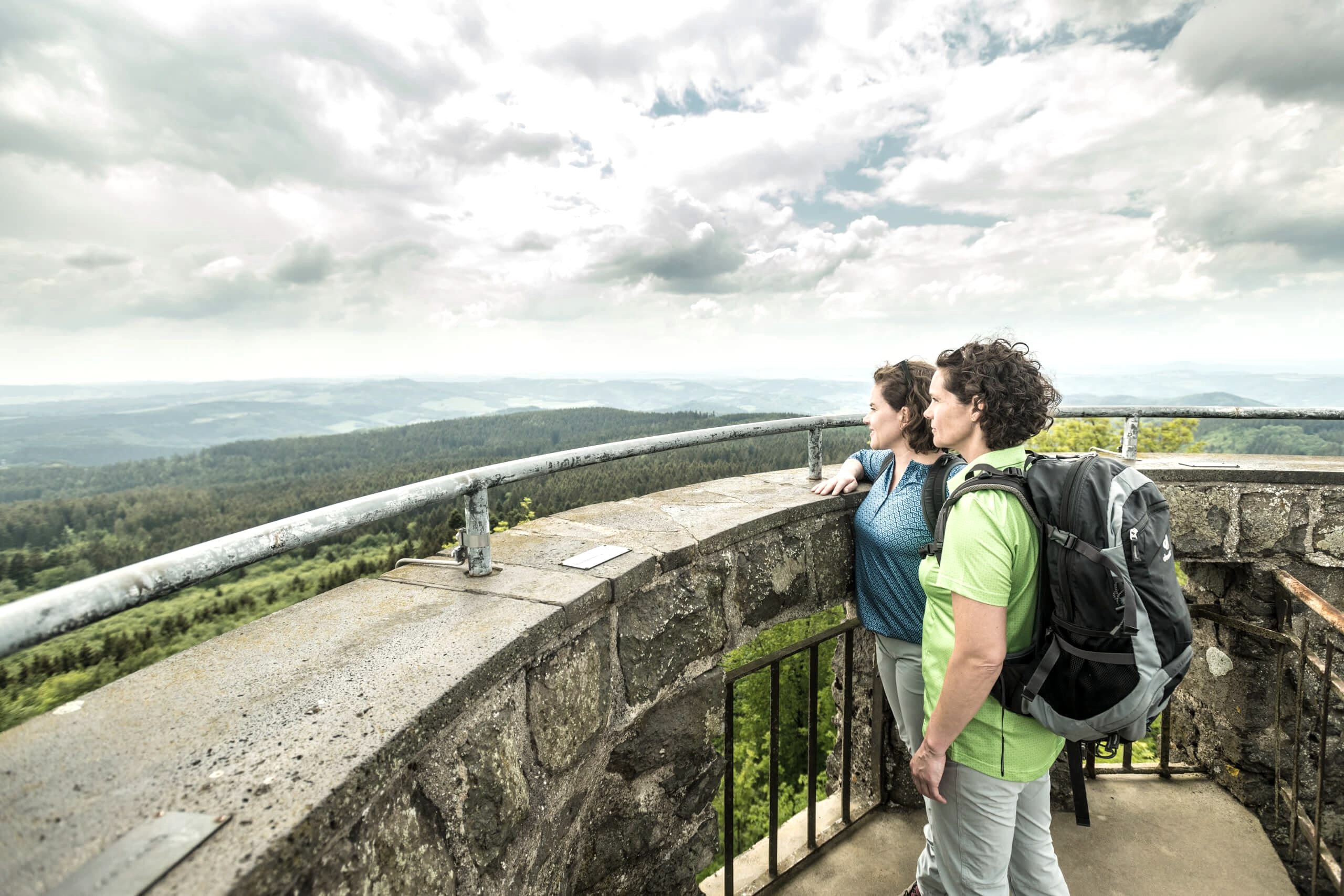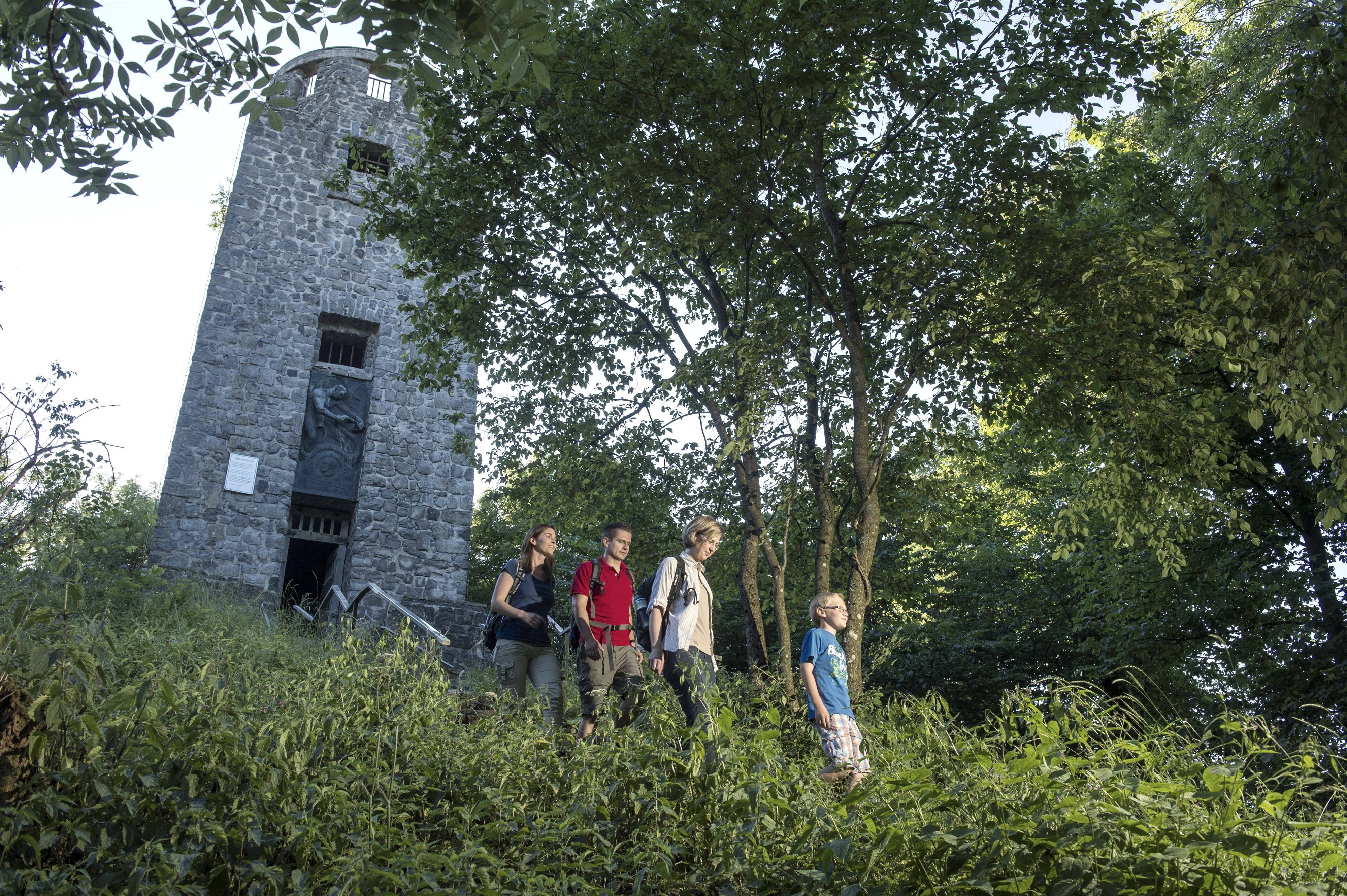 Seine bewaldete, von der Erosion abgerundete und fast perfekte Kegelform wird um ein wuchtiges, denkmalgeschütztes Gemäuer überragt. Der 1908/09 anlässlich der Silbernen Hochzeit von Kaiser Wilhelm II. und seiner Auguste Viktoria aus Bruchsteinen errichtete Kaiser-Wilhelm-Turm ist mit insgesamt etwas mehr als 16 Metern nicht rekordreif hoch. Und doch ist seine Besteigung ein unvergessliches Erlebnis, denn von seinem achteckigen Obergeschoss aus liegt einem die gesamte Eifel mit Burgen, Dörfern, und Städten zu Füßen. Mehr als das: Sogar der Kölner Dom zeichnet sich bei klarem Wetter wie winziges Spielzeug am Horizont ab. Der Blick verliert sich einerseits in den Weiten des Rheinlandes bis zum Siebengebirge, andererseits bis zum Hunsrück, Westerwald und sogar Taunus. Kein Wunder, dass dem Kaiser Anfang des 20. Jahrhunderts ein solch imponierendes Geschenk vom damaligen Kreis Adenau gemacht wurde.