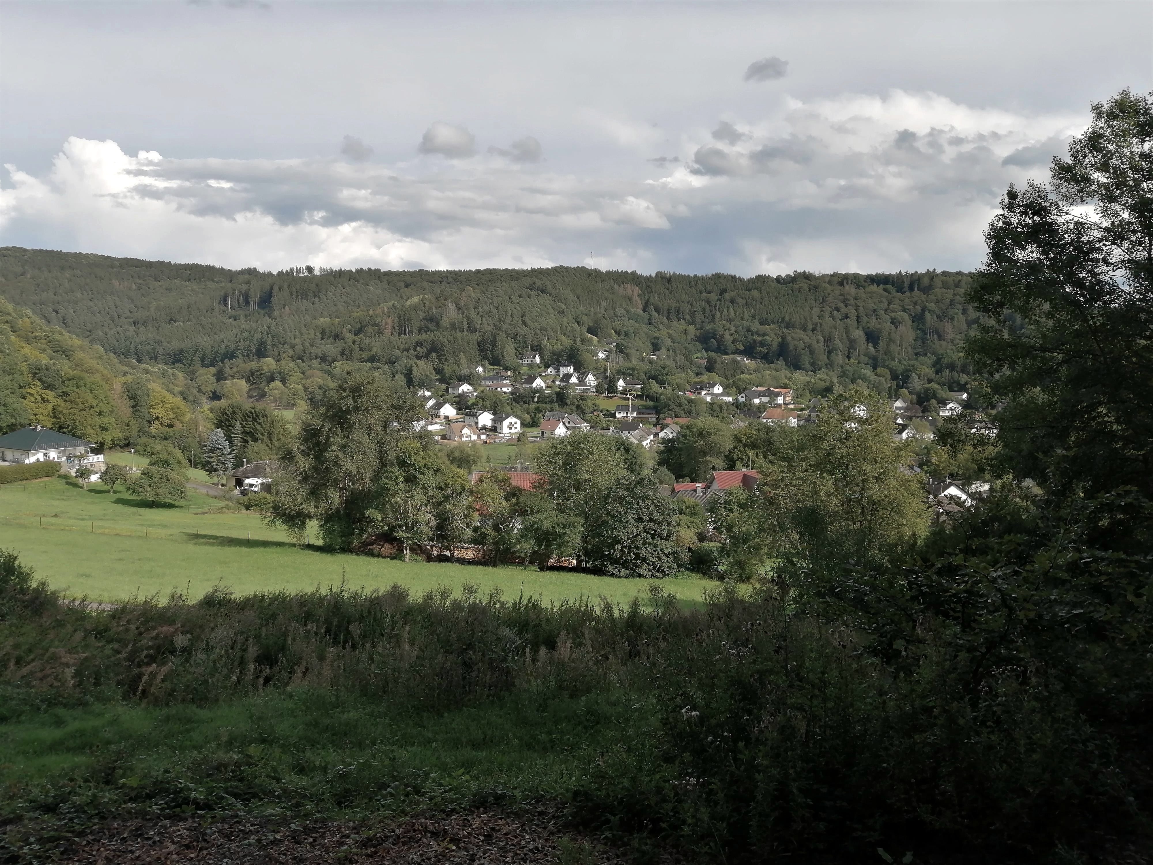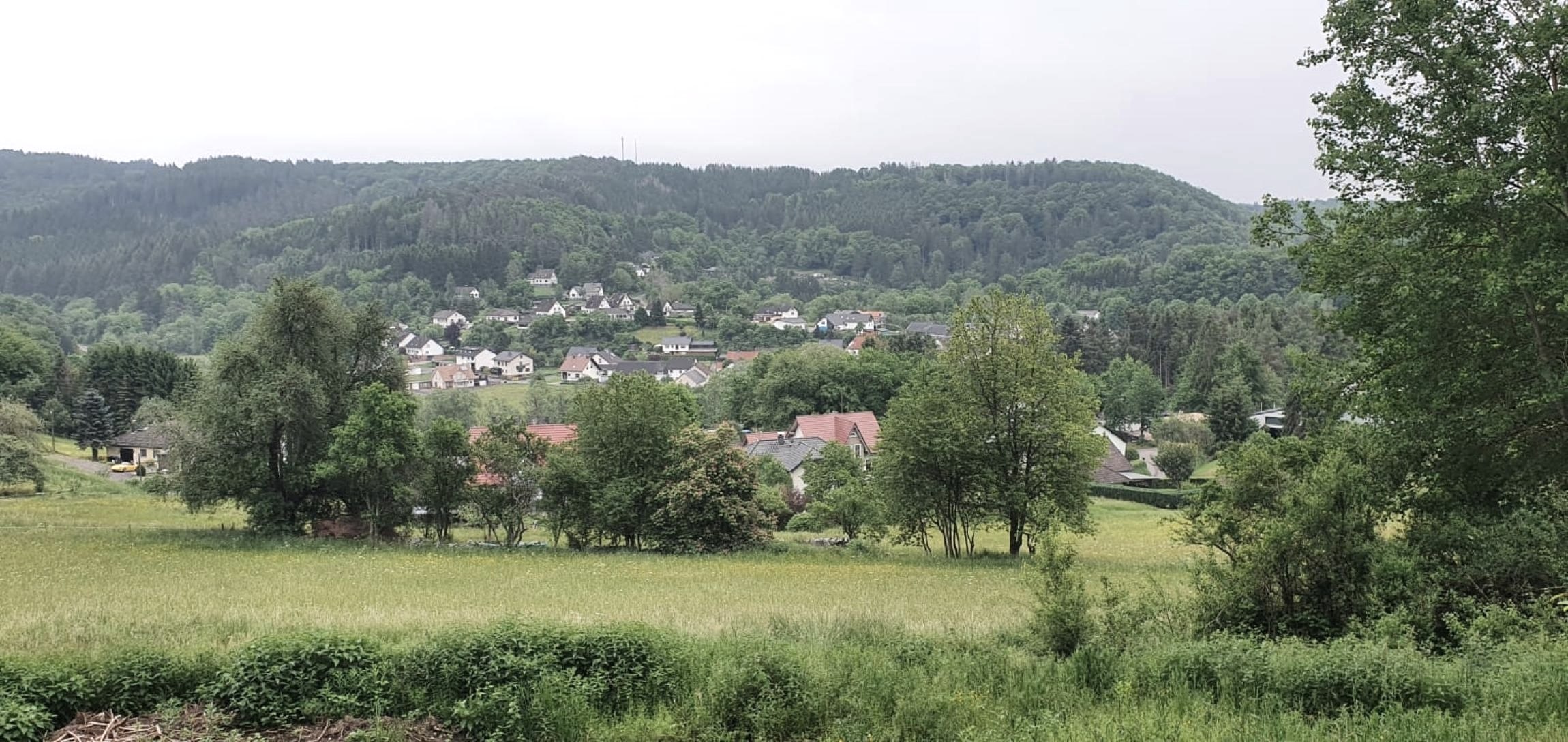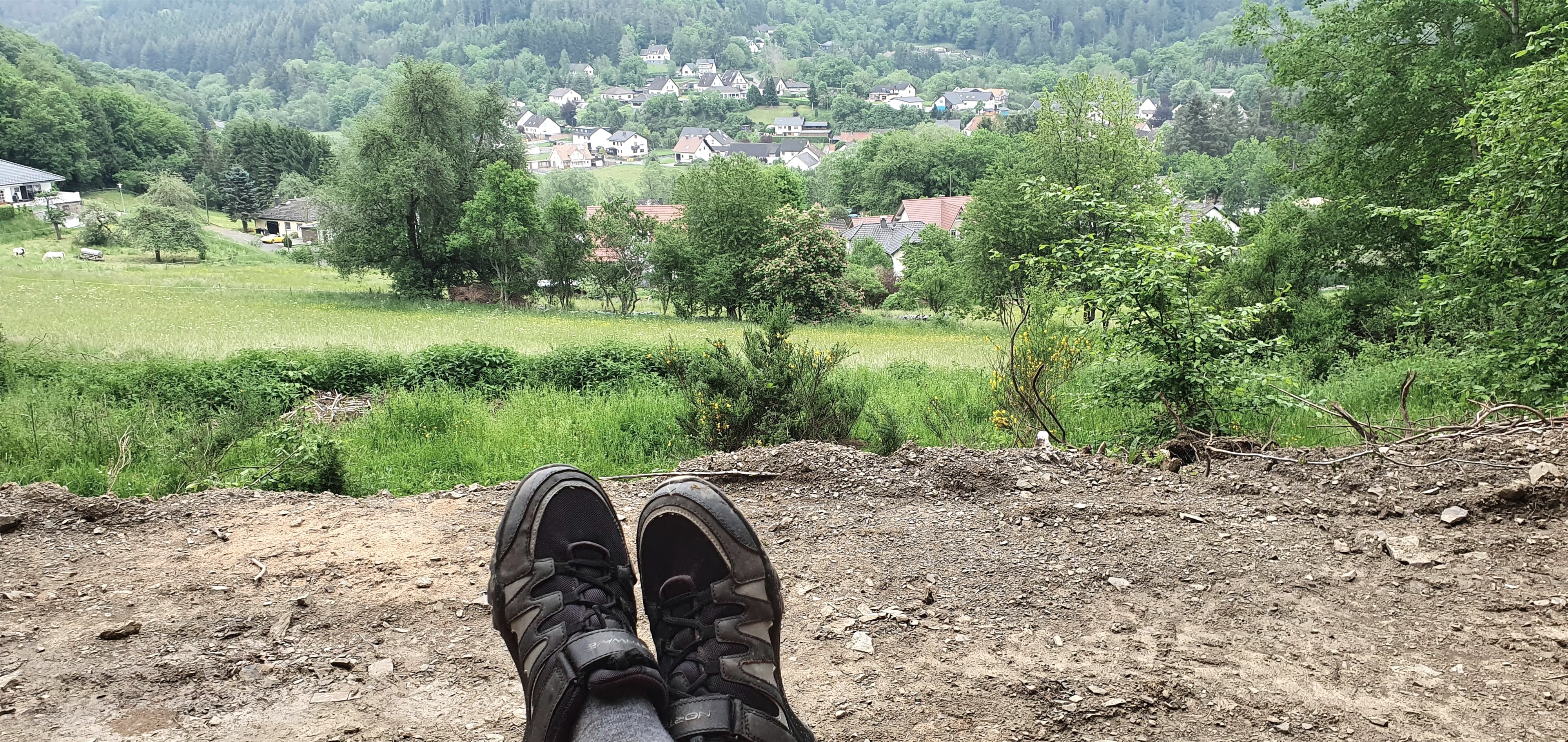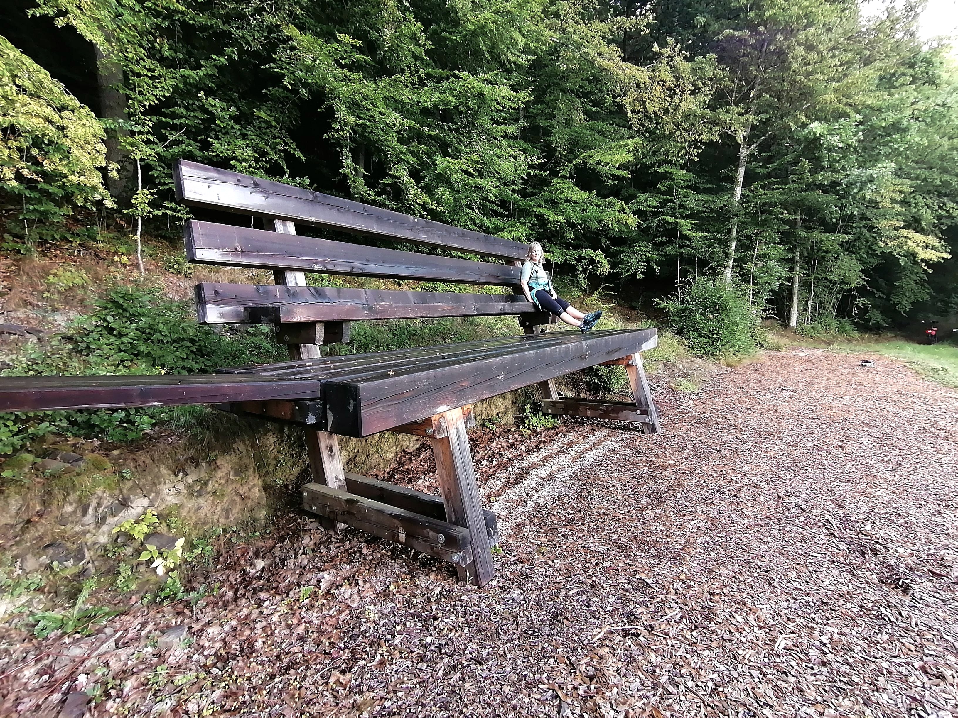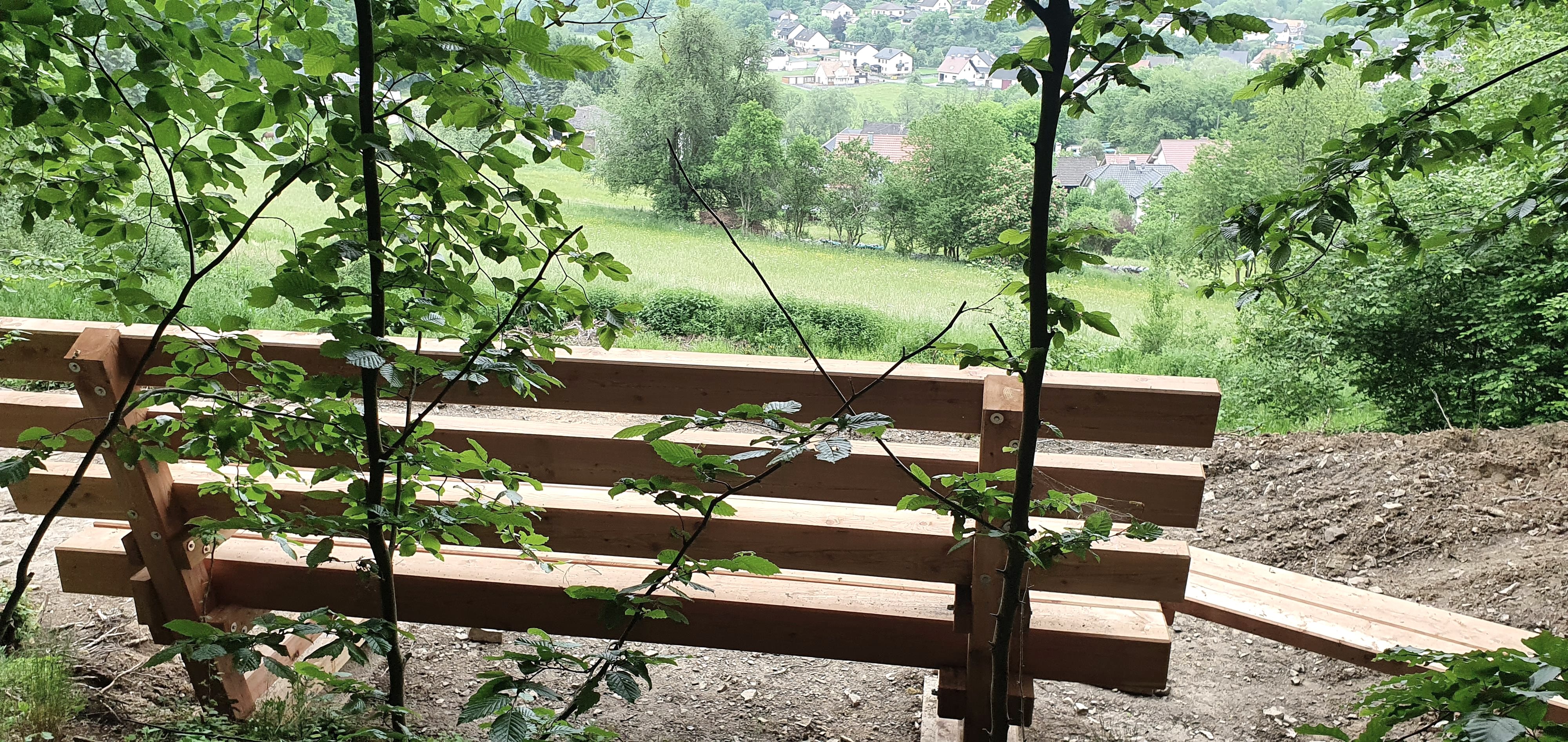 Herrliche Fernsicht von der spektakulären XXL-Bank oberhalb vom beschaulichen Eifeldorf Müsch an der Ahr.