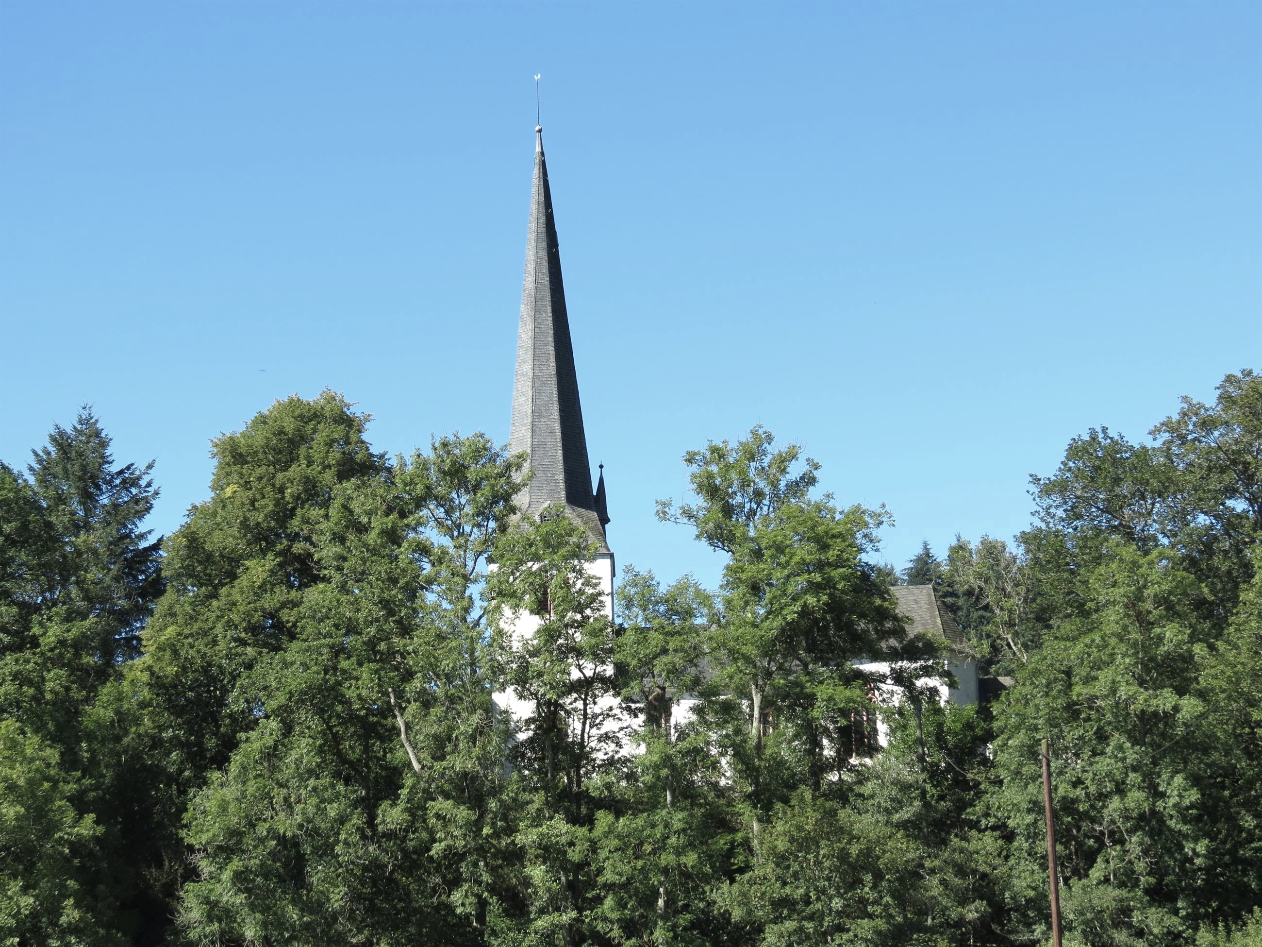 Die heutige Kirche geht überwiegend auf das 15. Jh. zurück. Die wertvollen Deckengemälde wurden 1971 restauriert. Auch die Glocken, die in den Jahren 1489, 1490 und 1519 gegossen wurden sind ein Schatz der Kirche. Auf der Südseite des Turms befindet sichj ein zweiteiliges Spitzbogenfenster mit Fischblasenmaßwerk. Neben dem barocke Altar (17. Jahrhundert) stehen Holzskulpturen von Johannes dem Täufer und dem hl. Wendelin aus dem 17. Jahrhundert.
