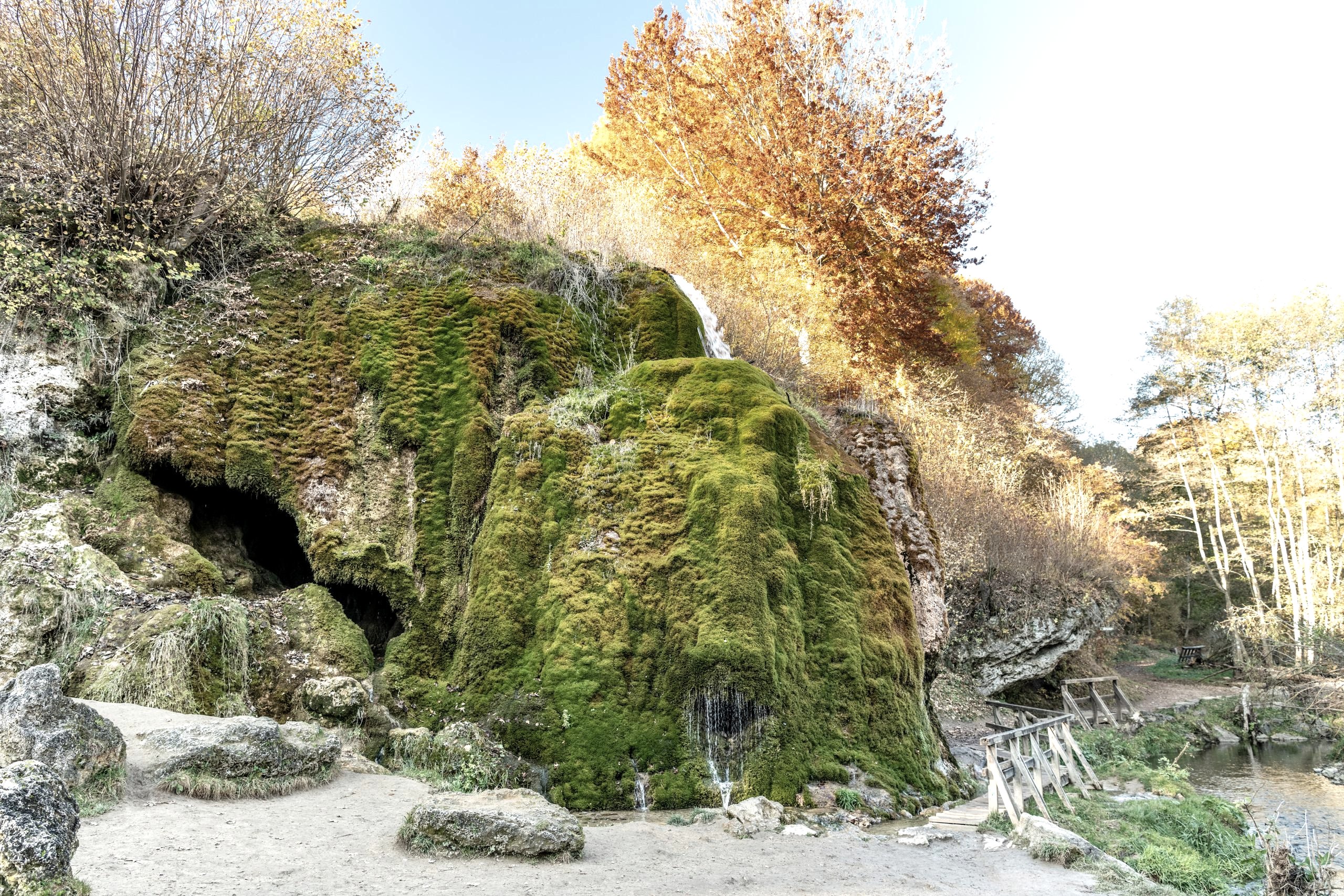 Durch die ständige Ablagerung "wächst" die Sinterbank immer weiter nach vorne ins Tal (ca. 10 cm im Jahr), daher auch der Name "wachsender Wasserfall"! Wegen seiner Einmaligkeit wurde der Wasserfall von Dreimühlen zum Naturdenkmal erklärt.