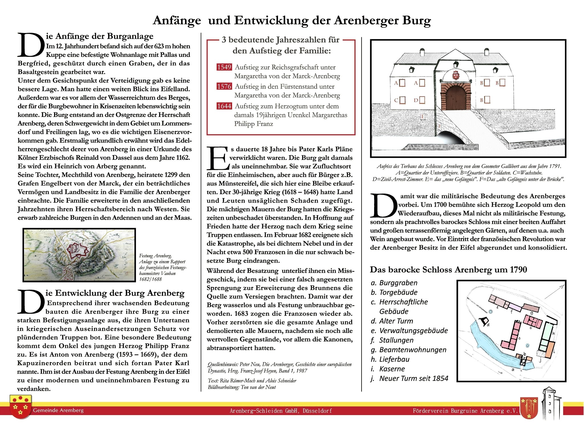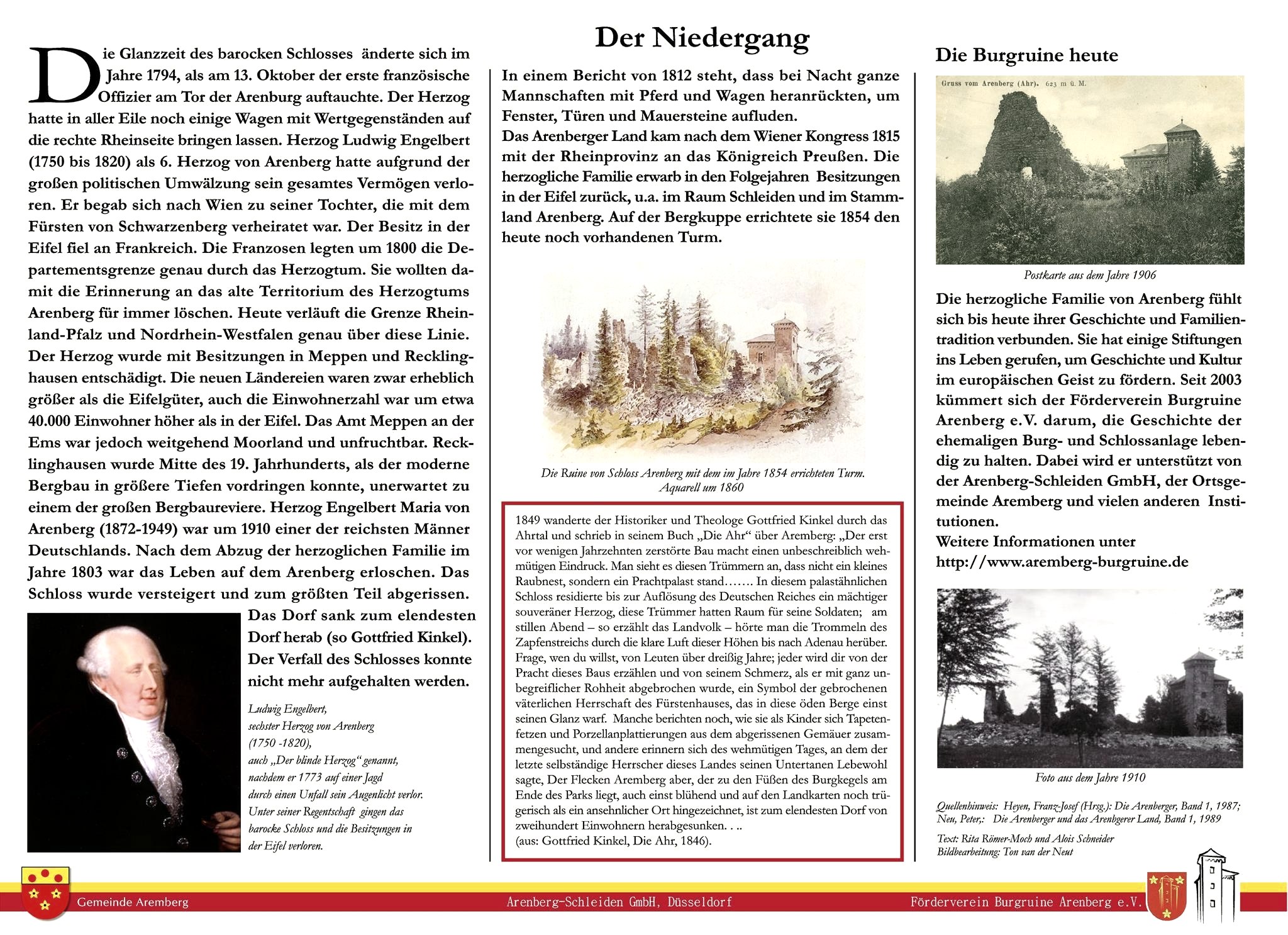 Information board about ruined castle of Arenberg