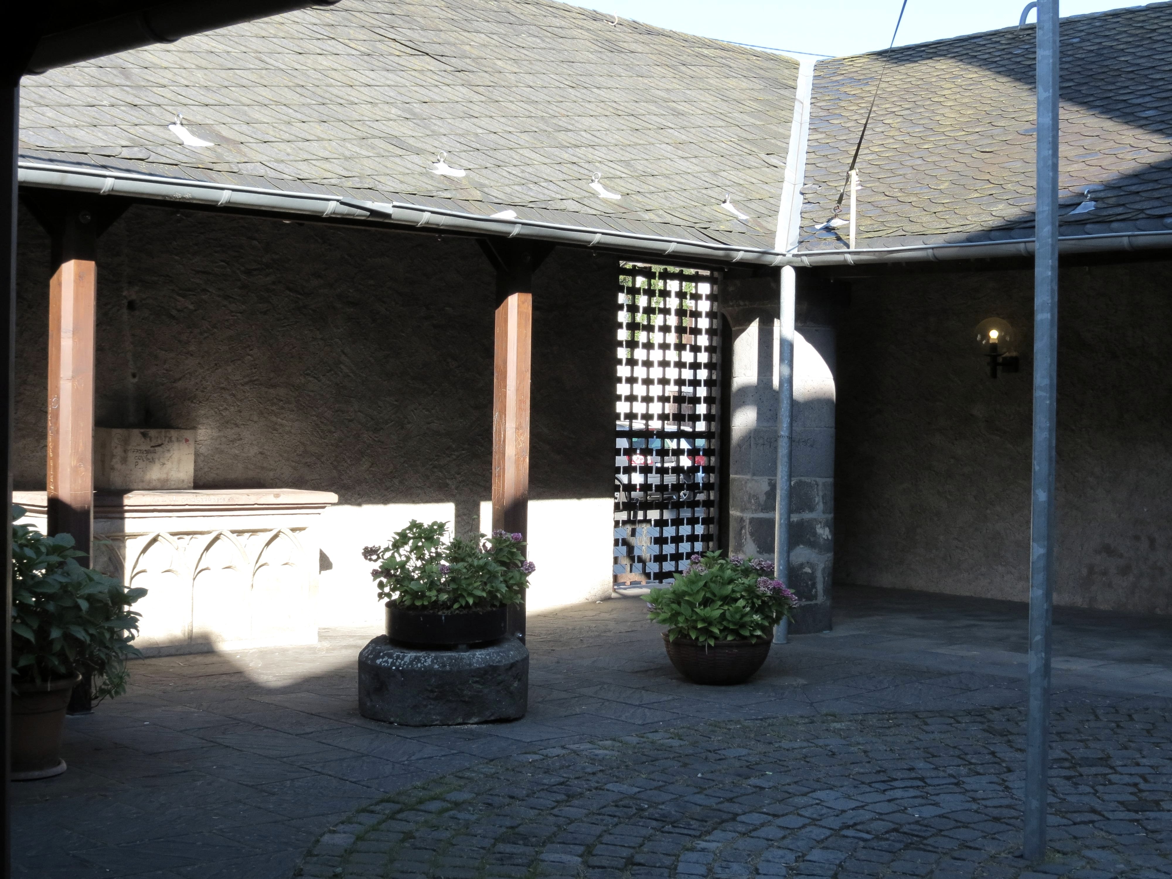 The initial building probably dates from the 10th / 11 Century and was later made extensions and conversions. Worth seeing inside the church restored in 1990: the main chorus of the high altar remains of an altar shrine beginning of the 16th Century and the age-matched figures in the choir, in the aisle of the Pieta and the Romanesque font from basalt. In the area of Tower Hall older murals were uncovered and restored during the renovation. In the outer wall of some basalt crosses of 1828 laid from here cemetery are embedded. The atrium is the rest of the church was destroyed in 1945 by bombs part.