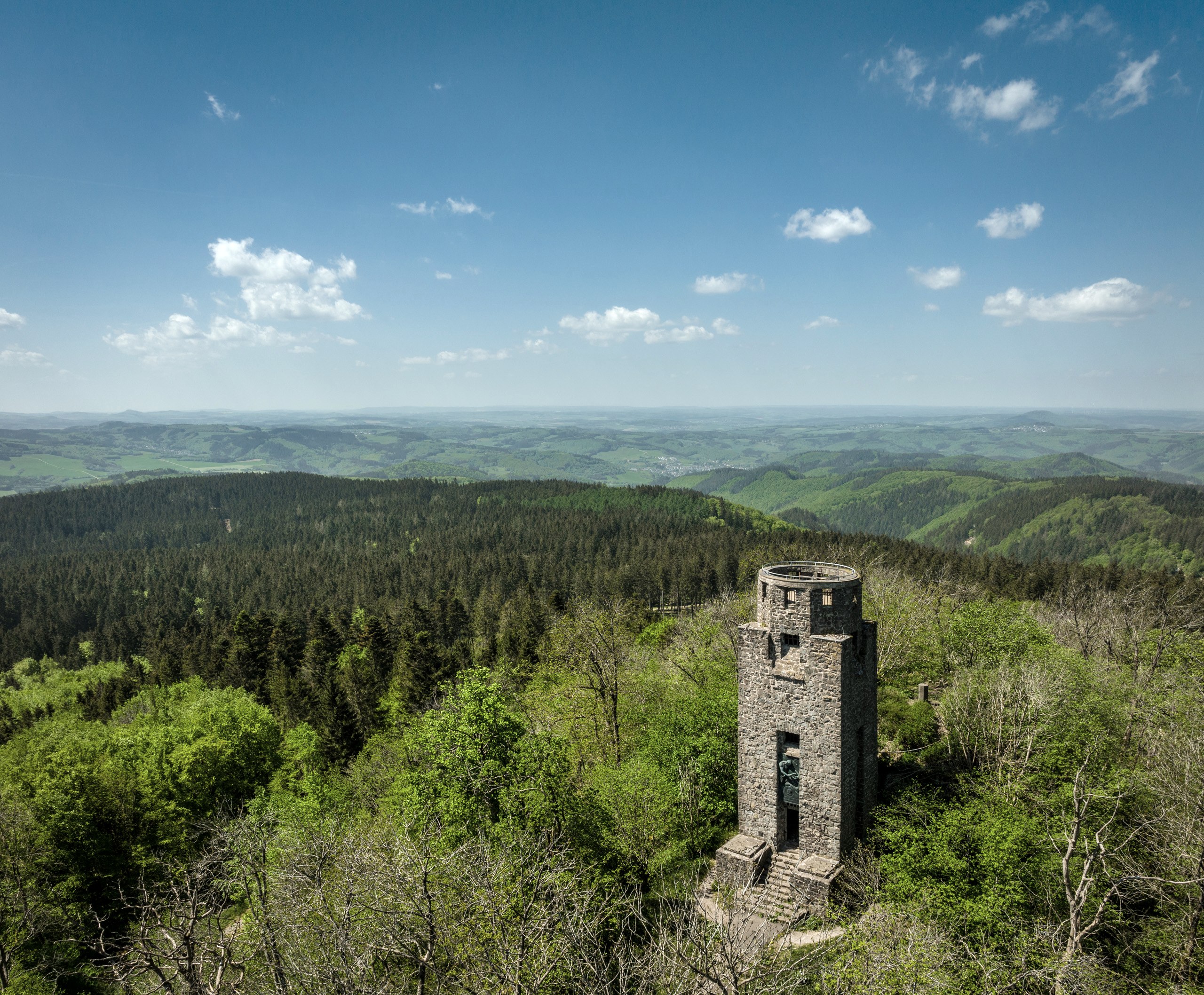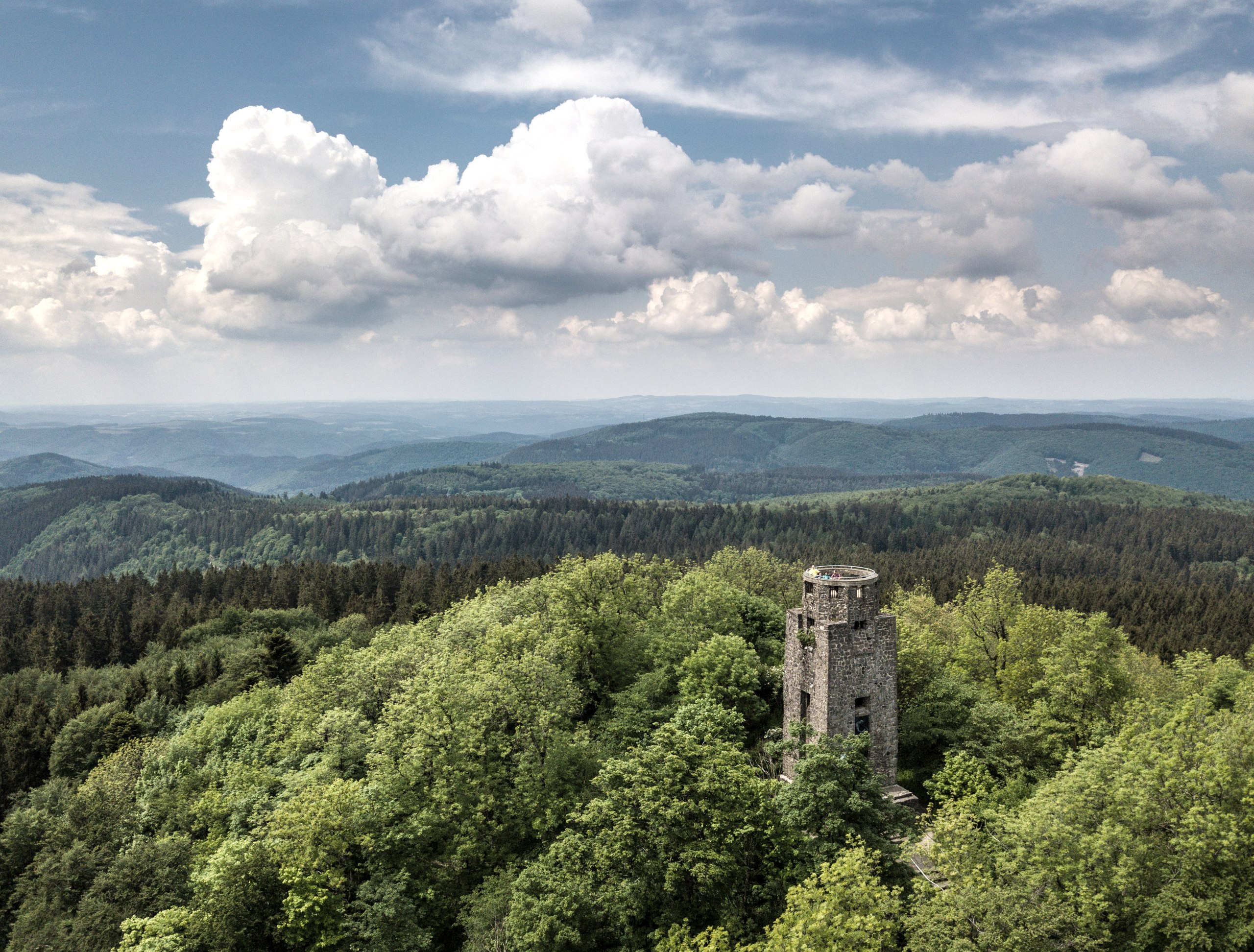 This circular route is around 25 km long and leads in the first stage from Adenau to the Hohe Acht, the highest elevation in the Eifel at 747 m above sea level. Starting from Dr.-Creutz-Platz, the trail climbs steadily uphill, mostly through shady woods, to the landmark on the basalt crest of the former Tertiary volcano: the Kaiser Wilhelm Tower, built in 1908/09. The occasion for the construction of this stone observation tower was the Silver Wedding of Kaiser Wilhelm II and Empress Auguste Viktoria, as well as the commemoration of Kaiser Wilhelm I. From the listed tower you can enjoy a magnificent panoramic view of the beautiful Eifel panorama, which on a clear day extends as far as the Siebengebirge and Cologne Cathedral. The rest of the route to Nürburg runs across the Ahr/Moselle watershed and therefore has hardly any difference in altitude to overcome. Above the village of Nürburg, it is worth visiting the ruins of Nürburg Castle, the highest castle in Rhineland-Palatinate (676 m above sea level). On the last stretch, the descent to Adenau is not difficult. Forest tracks alternate with open spaces and beautiful views. Soon after, the route takes you along the race track past the Schwedenkreuz. Here you have the opportunity to watch the racers on the Nordschleife of the Nürburgring. The route continues through the Adenauer Forest back to the centre of Adenau.