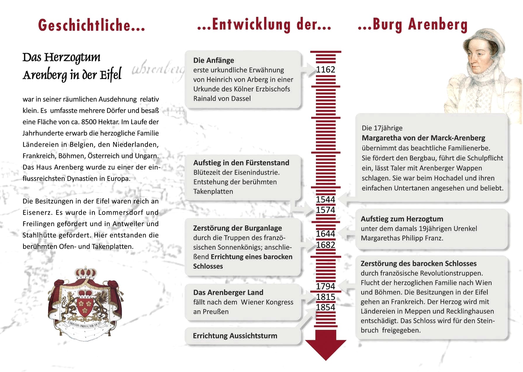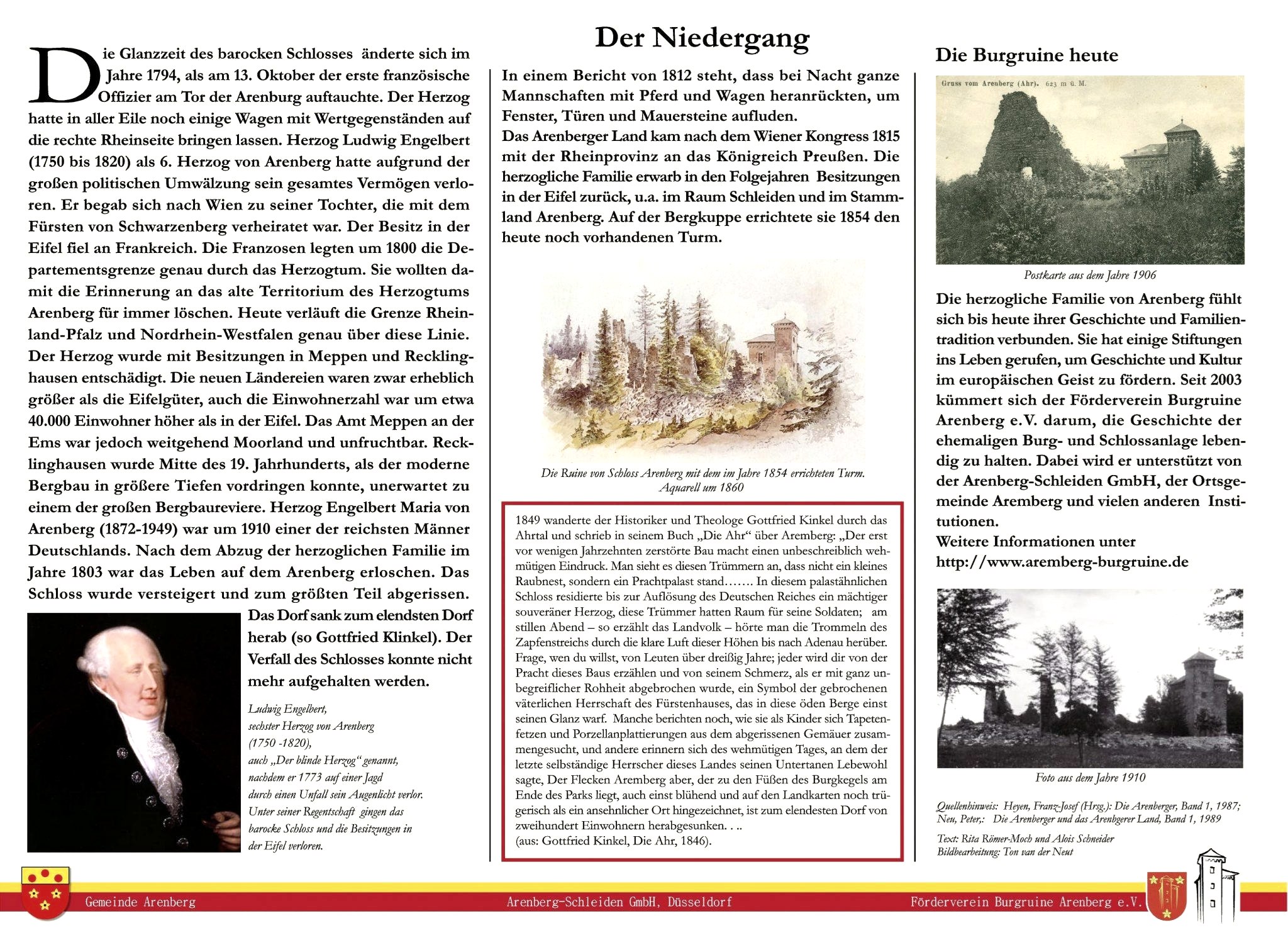 There is a beautiful hiking area all around Arenberg castle. The tower can still be viewed from the outside from the grounds of the former castle. The castle is said to have been erected in the 12th century and was destroyed by the French in 1683. A friends’ association looks after the upkeep of the tower and the entire grounds.