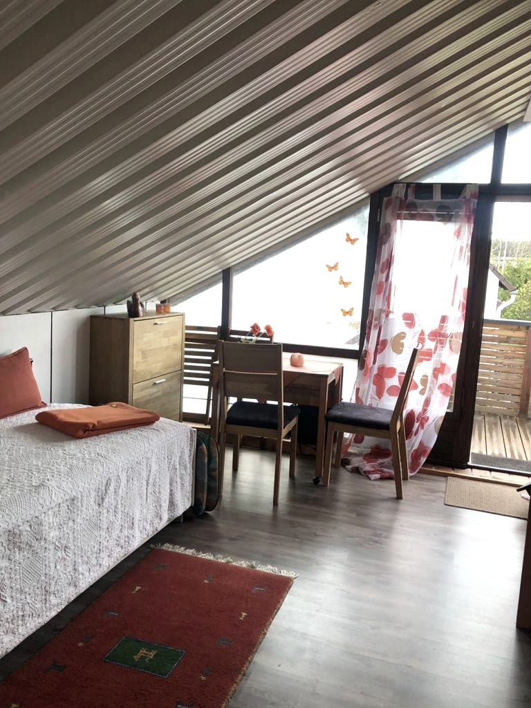 Recreation in the Hocheifel/ Nürburgring vacation region . Surrounded by beautiful forests and romantic valleys. Peace and relaxation with top views of nature. On 70 square meters on the upper floor of the house you have pure relaxation. Own terrace and garden for use. The spacious apartment is equipped with 3 beds, shower room and kitchenette and has its own entrance.