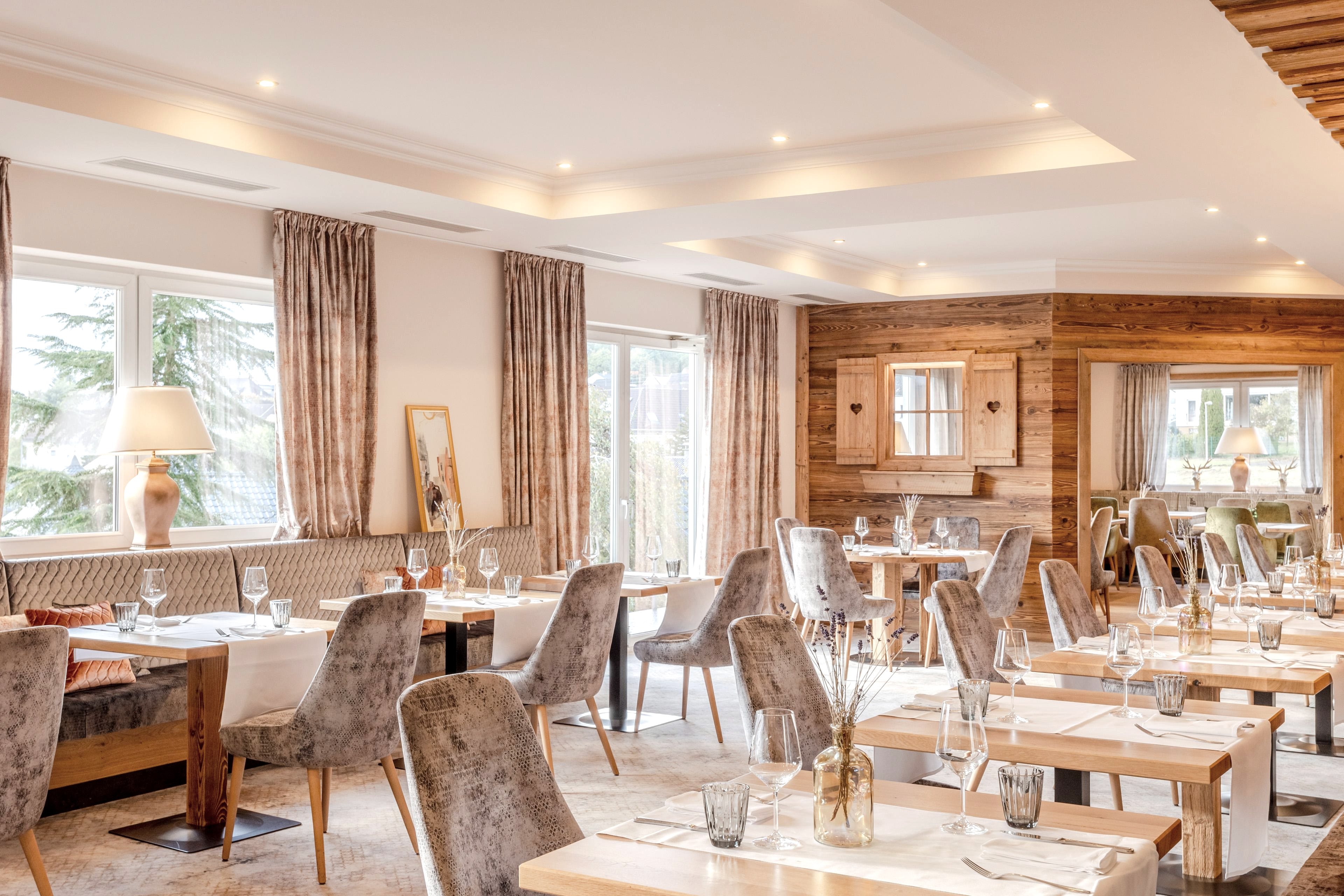 In the morning, a breakfast buffet is served with specialities from the Eifel region, high-quality organic ingredients and delicious dishes. Lunch, dinner and fresh game dishes are also available. In summer you can also dine on the terrace.