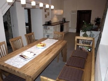 Do you love romance, peace, nature and fresh air? Then the listed Junkerhaus is the right place for you. This is the ideal starting point for your holiday and the basis for relaxing days. The Junkerhaus was revitalised in 2009 and completely refurbished to 4-star standards. The Junkerhaus offers 6 rooms and 2 bathrooms. The facilities: - 2 separate children's rooms - a sofa bed for a further 2 people in each of the two living rooms - 32-inch LCD satellite TV, DVD, stereo system - WLAN, telephone, free calls to German landlines - linen for bed, bathroom, kitchen, hairdryer - an additional travel cot for children on request On the ground floor there is a cosy reception hall with a dining table ("Rittersaal") and a large eat-in kitchen with a further dining table, which is equipped with everything you need for a good kitchen, including a dishwasher and two children's dishwashers. dishwasher and two children's chairs. Outdoor area: - in the outdoor area several seating areas - in the shade, in the sun as well as a barbecue - carport for a car / motorbike and a parking space next to the carport.