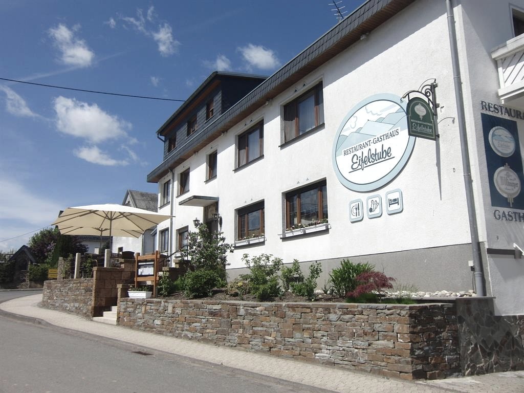 Our traditional house is located not far from the Nuerburgring, in the romantic part of the high Eifel region. Enjoy the charm of one of the most natural and gorgeous landscapes in Germany which offers its attractions at all seasons. Have active holidays or a relaxation stay. The Eifel region is famous for its hospitality and we attach importance to it. We offer a hearty, private atmosphere for your well-being and cosiness. Our rooms are furnished in cottage style and all en-suite to provide all the comfort you need for a pleasant stay. We look forward to you. Anke & Horst Schneider Restaurant. Freshness and taste Find out the original and hearty hospitality of our family-run house and its beloved regional cuisine. Visit our restaurant and enjoy the changing and freshly prepared meals. The diversity of taste inspires us to always something new. Our actions in the run of the year gives you the opportunity to get known to us or come around at www.eifelstube.com We are in the habit of hospitality since 1964, just according to our motto: „Laugh at life, maybe it laughs back“ ! Gasthaus Hotel Silence and relaxation. Bright friendly rooms, required for a pleasant stay. Our cosy country-style-rooms are all en-suite, equipped with spa-shower, WC, hairdryer, make-up mirror, telephone, safe and Sat-TV. Wi-Fi is possible.