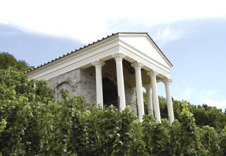 As a resting place, the small Roman temple, the Grutenhäuschen, offers visitors a breathtaking view of the nearby Moselle.