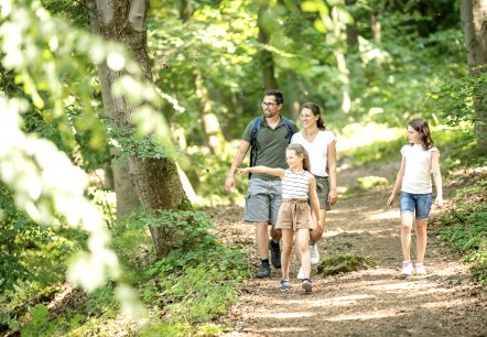 Adventurous hiking in the Laacher See volcanic region.