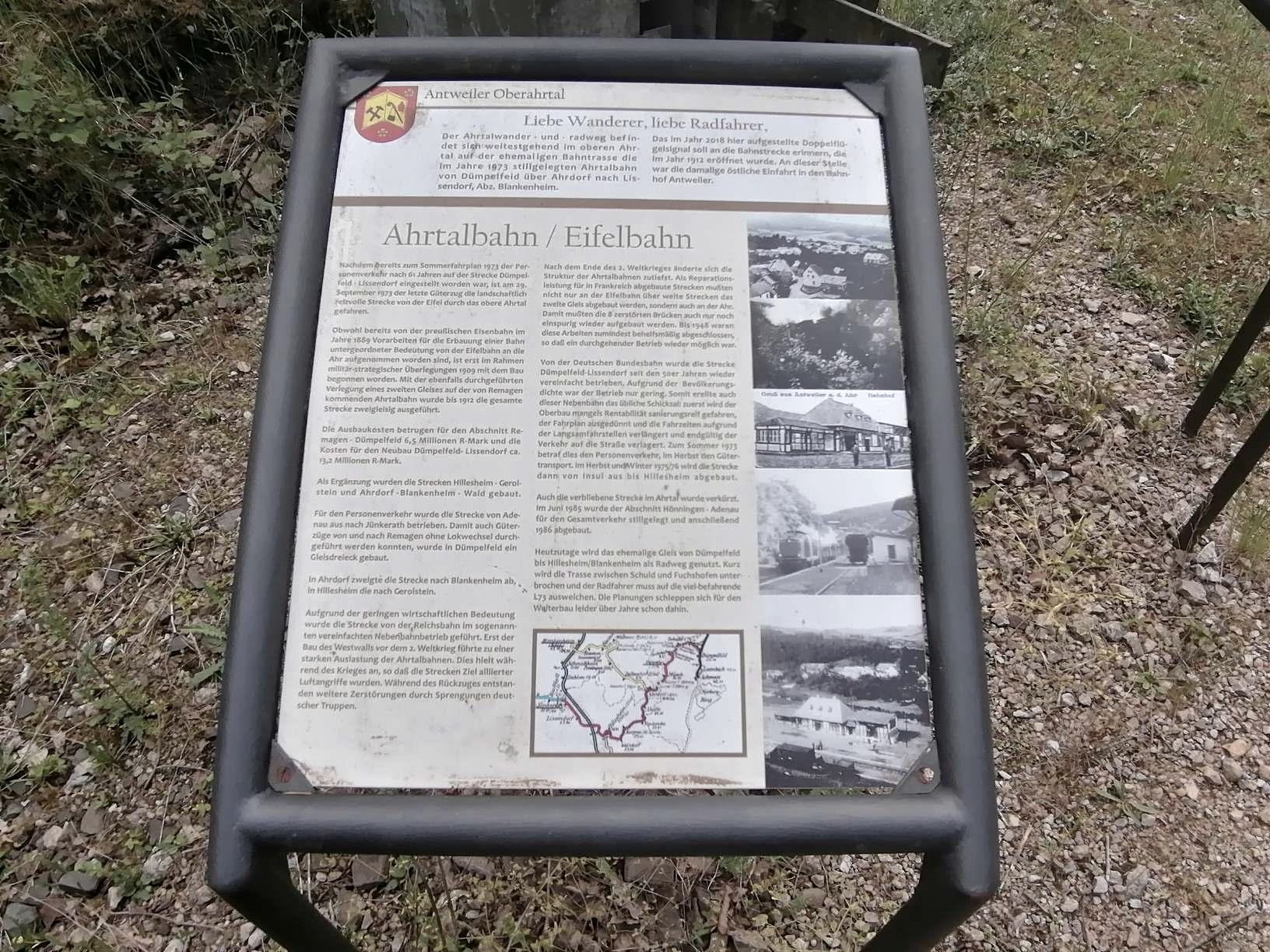 Des aperçus intéressants sur l'histoire du chemin de fer de la vallée de l'Ahr, qui reliait Dümpelfeld et Lissendorf sur cet itinéraire il y a quelques décennies à peine, peuvent être trouvés sur les panneaux d'information au pied du signal à deux ailes, qui rappelle clairement la ligne de chemin de fer.