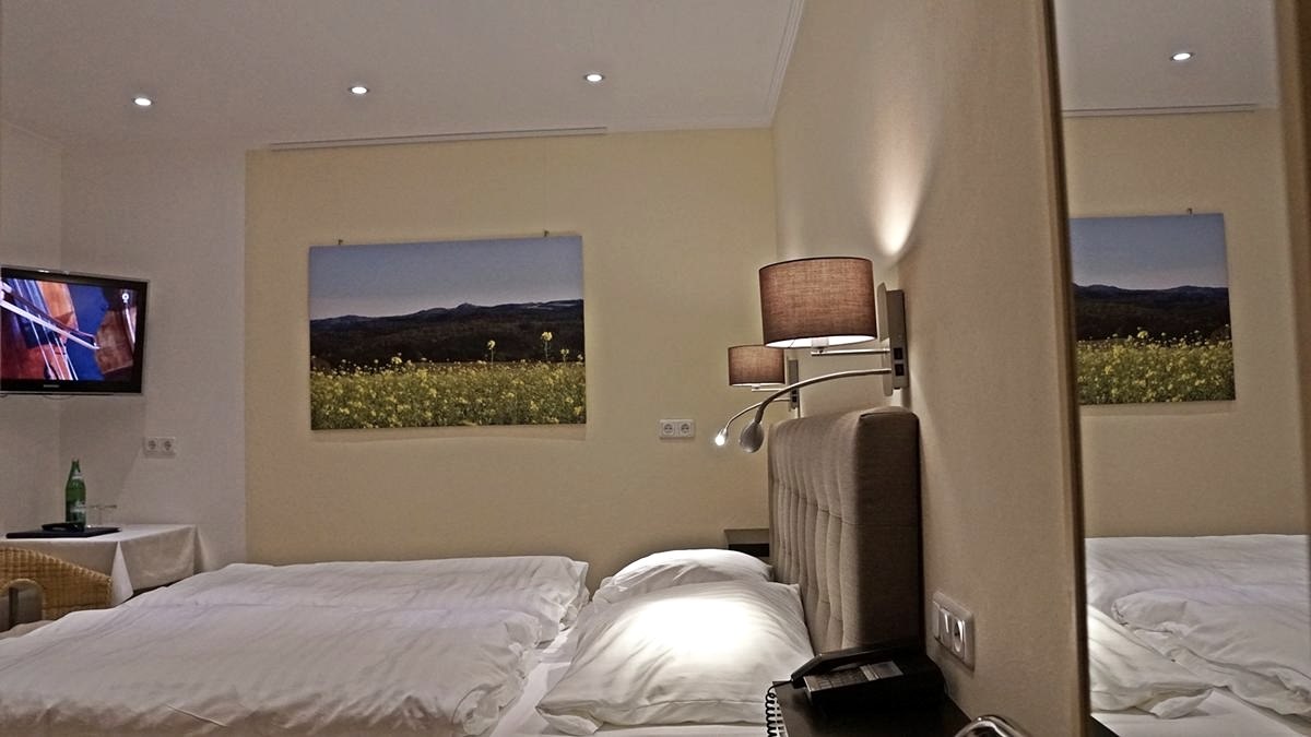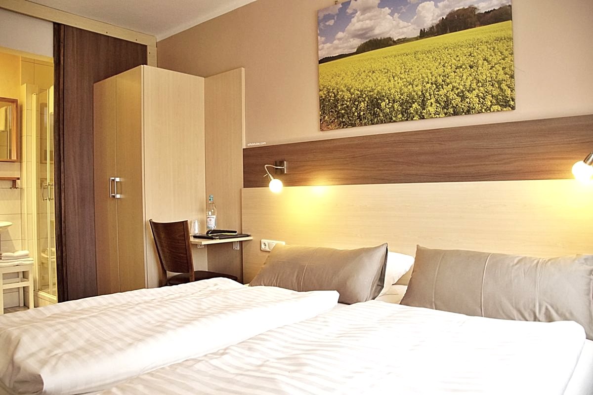Des chambres claires et accueillantes - une condition indispensable pour un séjour agréable. Nos chambres confortables de style campagnard sont chacune équipées d'une douche/WC bien-être, d'un miroir cosmétique, d'un sèche-cheveux, d'un téléphone, d'un coffre-fort et d'une télévision par satellite. Internet via W-LAN est possible.