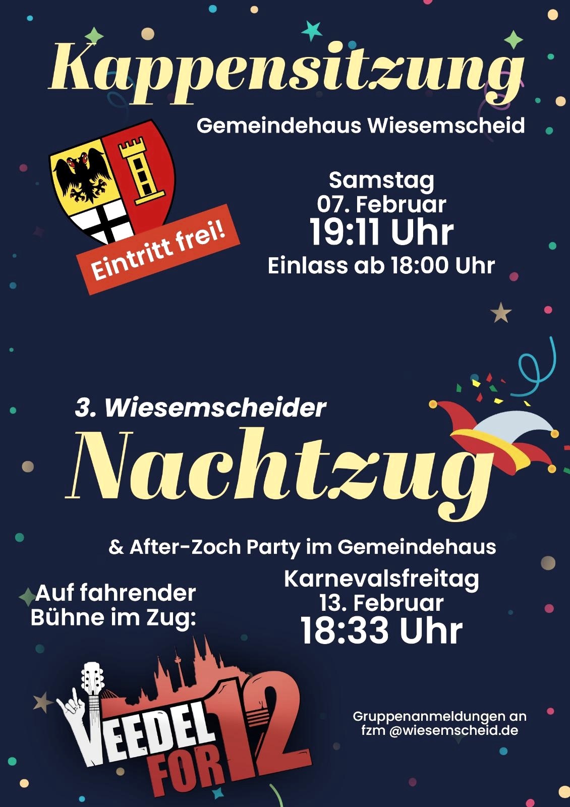 2. Wiesemscheider Nachtzug 13 févr. 2026 WiesemscheidDéfilé de carnaval suivi de musique et de danse.mehr lesen Partager: