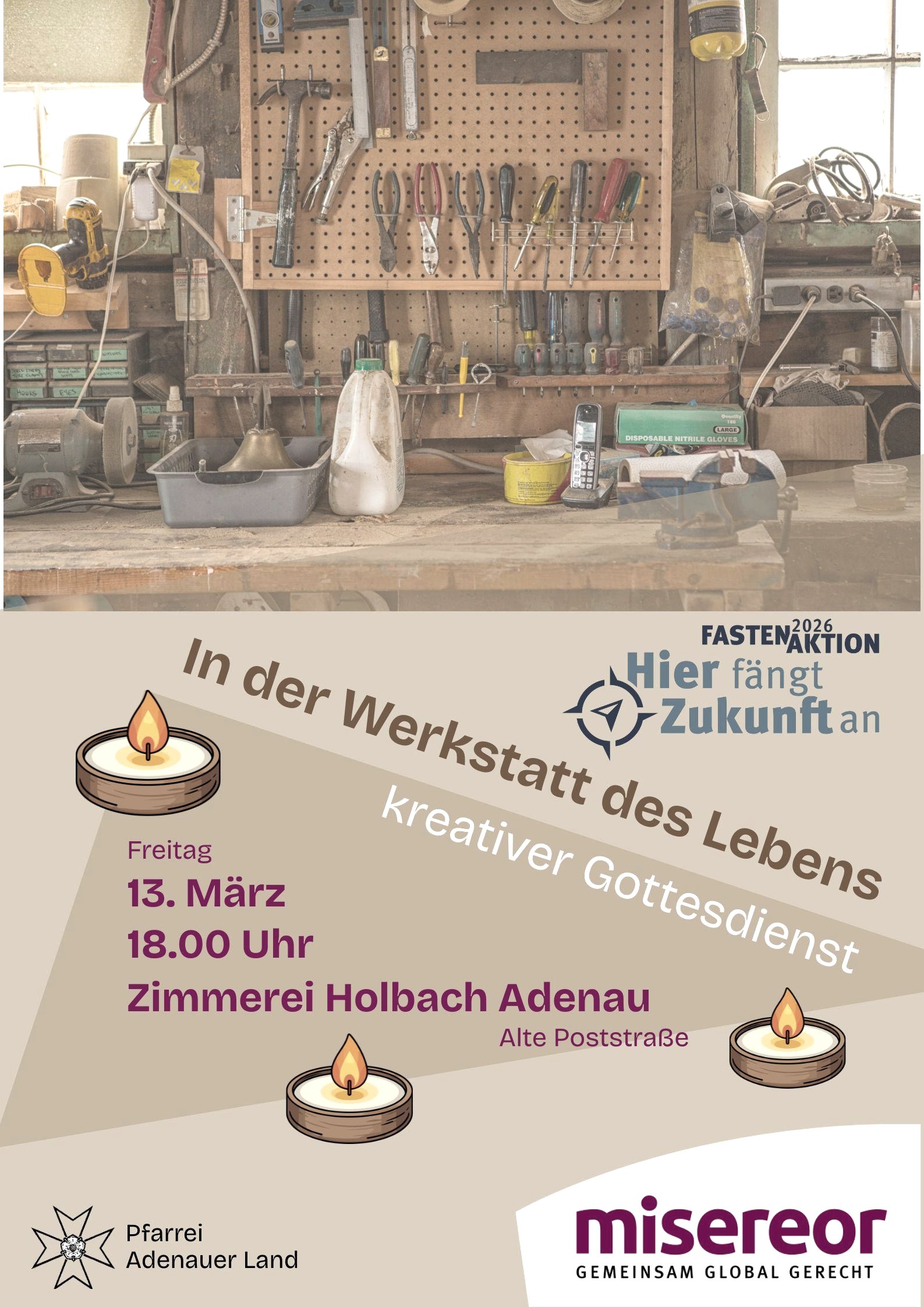 Le vendredi 13 mars à 18h30, un service spécial aura lieu dans l'atelier Holbach, Alte Poststraße 50 à Adenau.