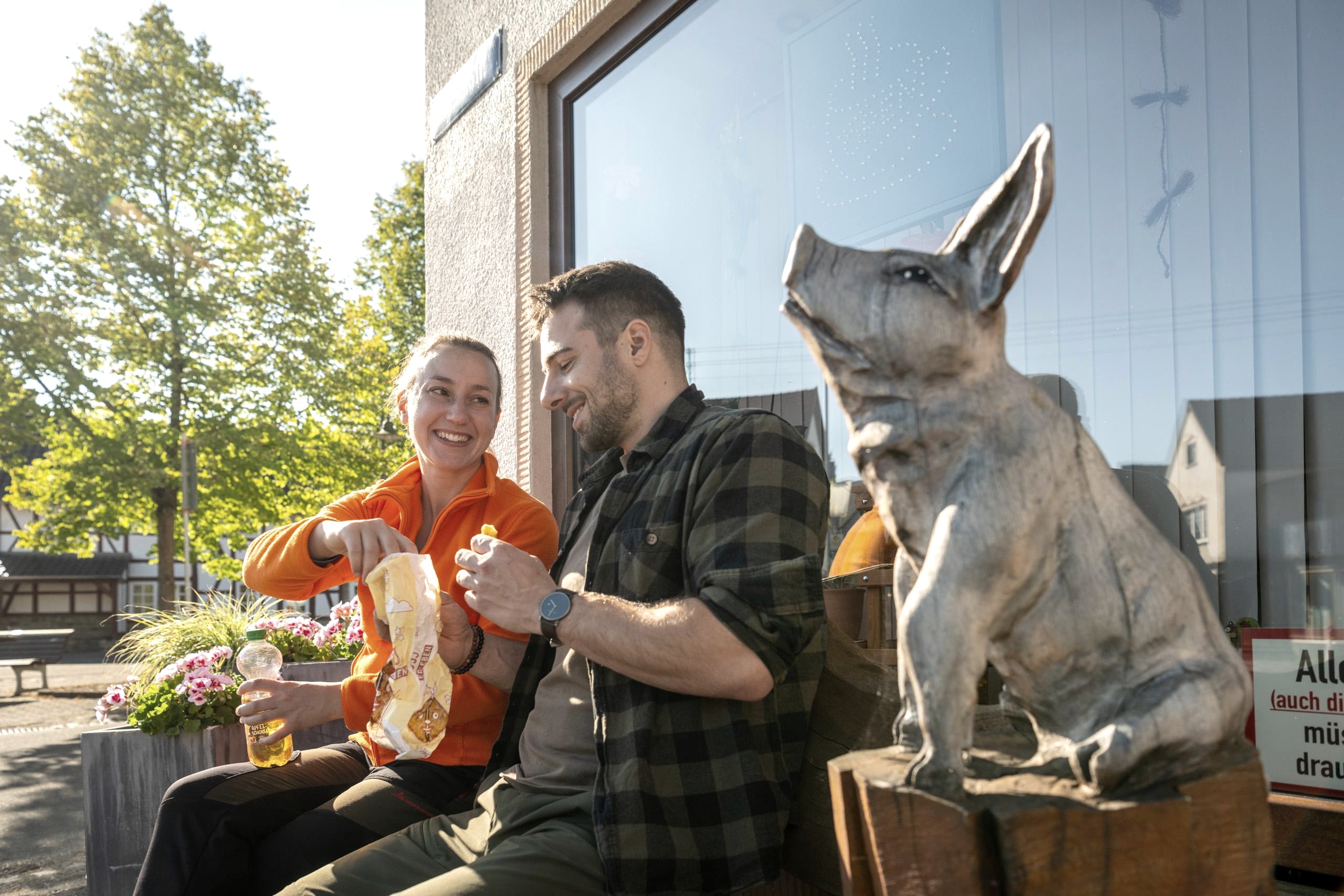 Fleisch-und Wurstwaren werden ausschließlich in der hofeigenen Metzgerei produziert. Das Angebot wird abgerundet durch frisches Wild und Wildspezialitäten aus Müscher/Eifeler Wäldern. Sowie Backwaren.