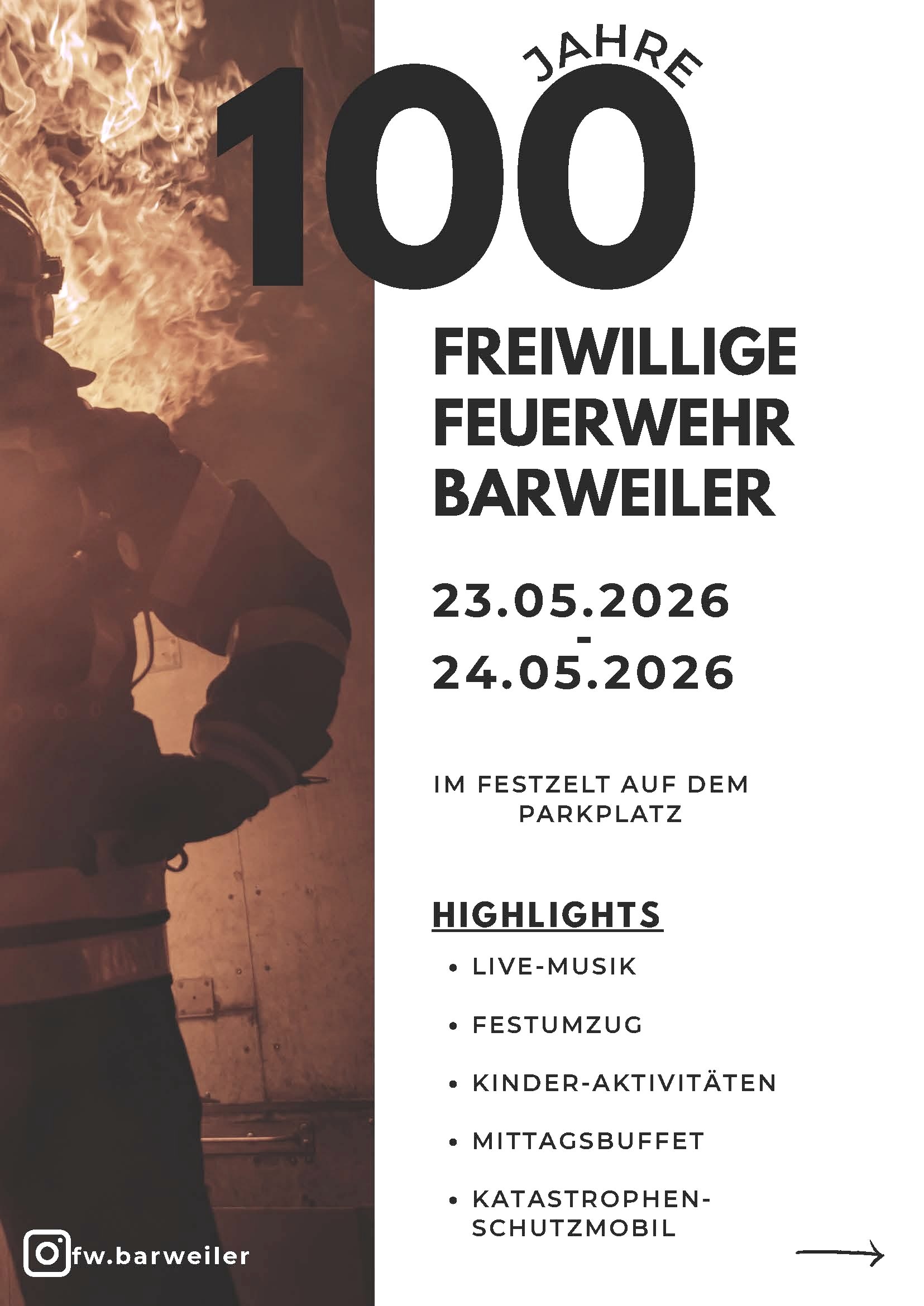 De vrijwillige brandweer Barweiler viert een heel bijzonder jubileum: Al 100 jaar staat de blusgroep in het teken van veiligheid, hulp en kameraadschap in de gemeente. Dit historische evenement wordt met een gevarieerd feestweekend op passende wijze gevierd -