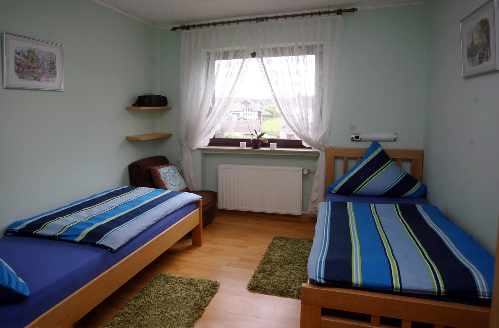 De etage heeft een zelfstandige ingang. En heeft een ruime slaapkamer met en Twee-Persoons Bed en een ruime slaapkamer met twee een Personns Bedden. Even als eeb keuken, Bad- en Woon/eetkamer.
