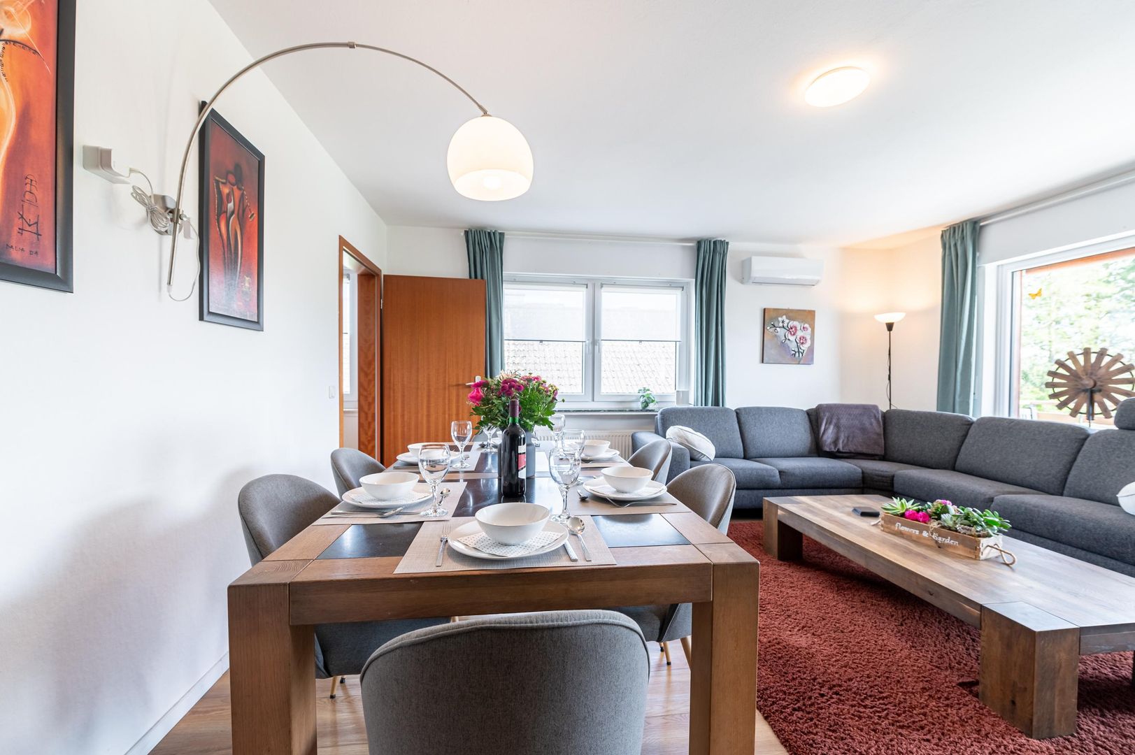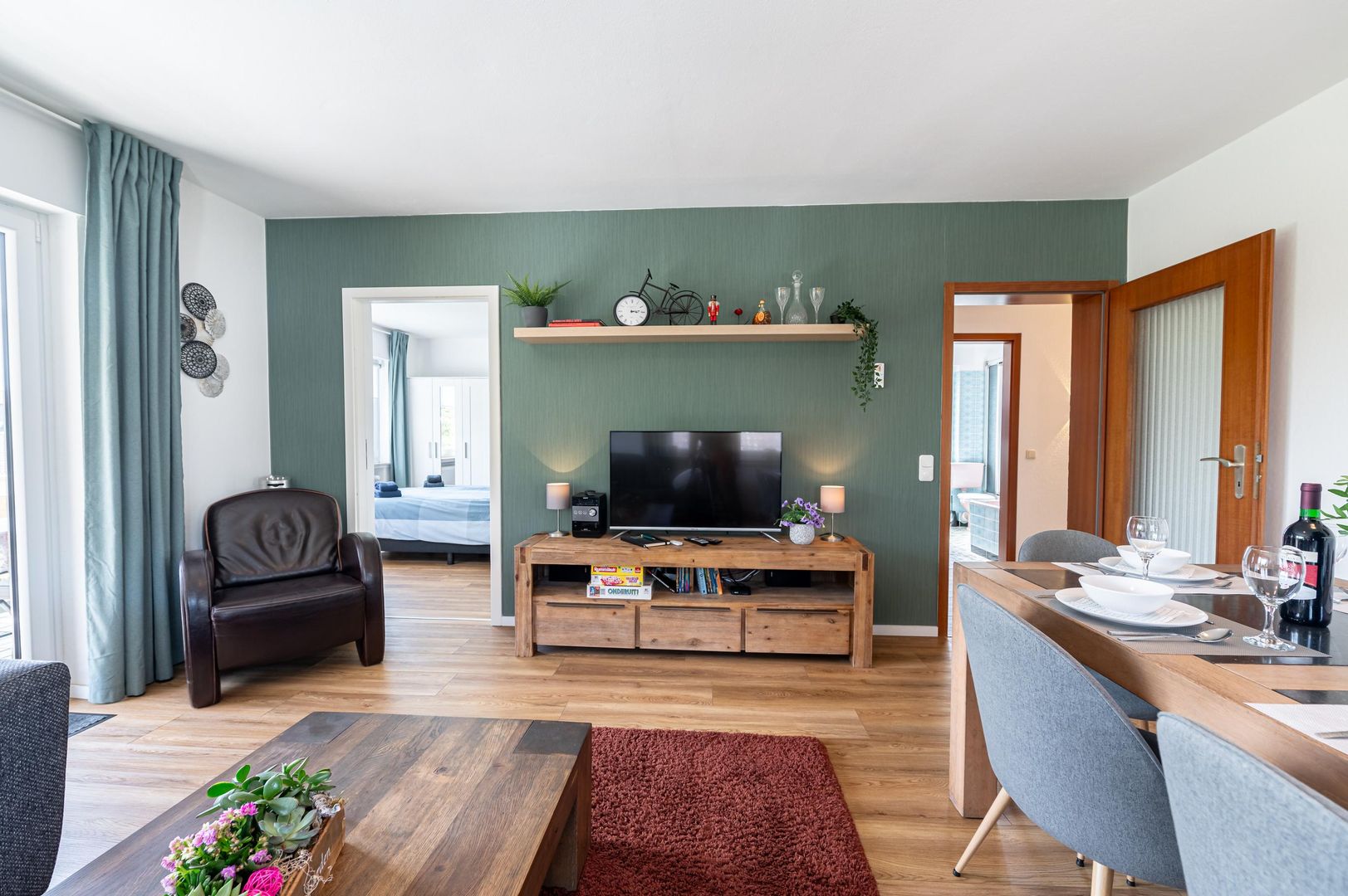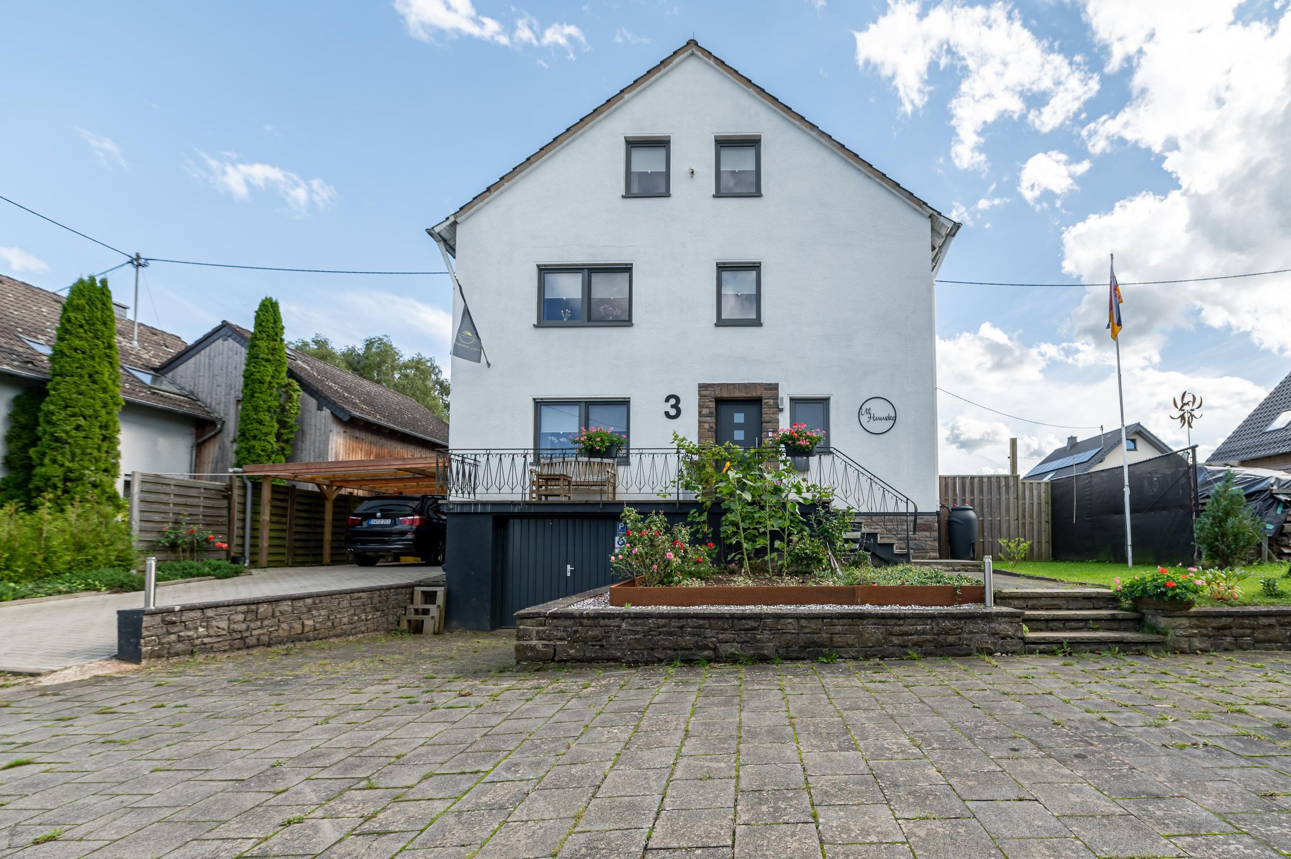 In de woonkamer is er een zithoek met TV en een grote eettafel. De ruime keuken is goed uitgerust, van een vaatwasser tot een magnetron en een waterkoker, senco, Via 2 ingangen (woonkamer en slaapkamer) bereikt u het balkon; hier is er een prachtig uitzicht naar Nürburg. Het appartement heeft ook 3 aparte slaapkamers, 1 badkamer met douchebak, bad en toilet, en een extra gastentoilet. . Uw eigen parkeerplaats is voor u gereserveerd. Het huis is rustig gelegen aan de rand van het platteland.