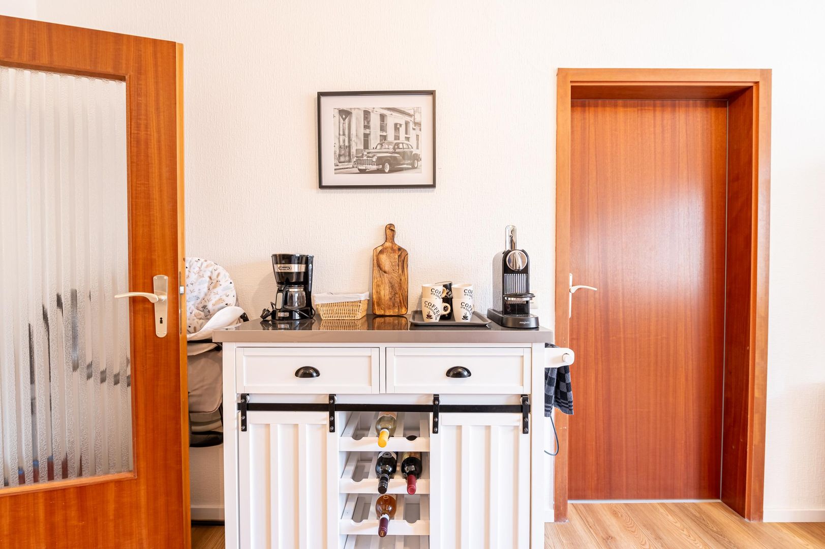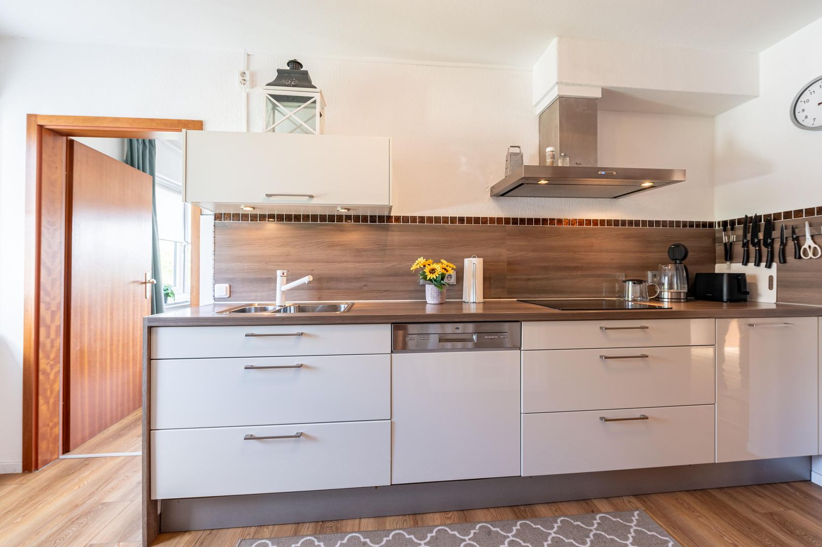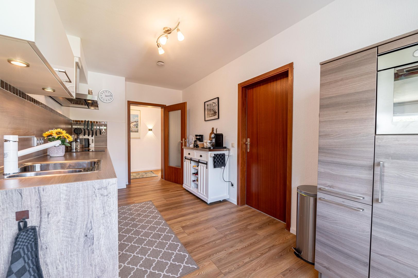 - Keuken oven, magnetron, vaatwasser, koelkast, berging, (toegang tot het balkon)