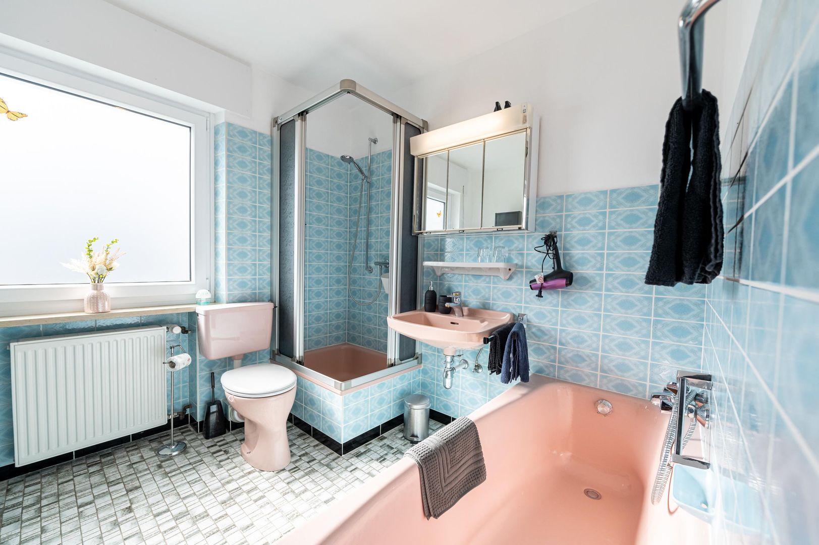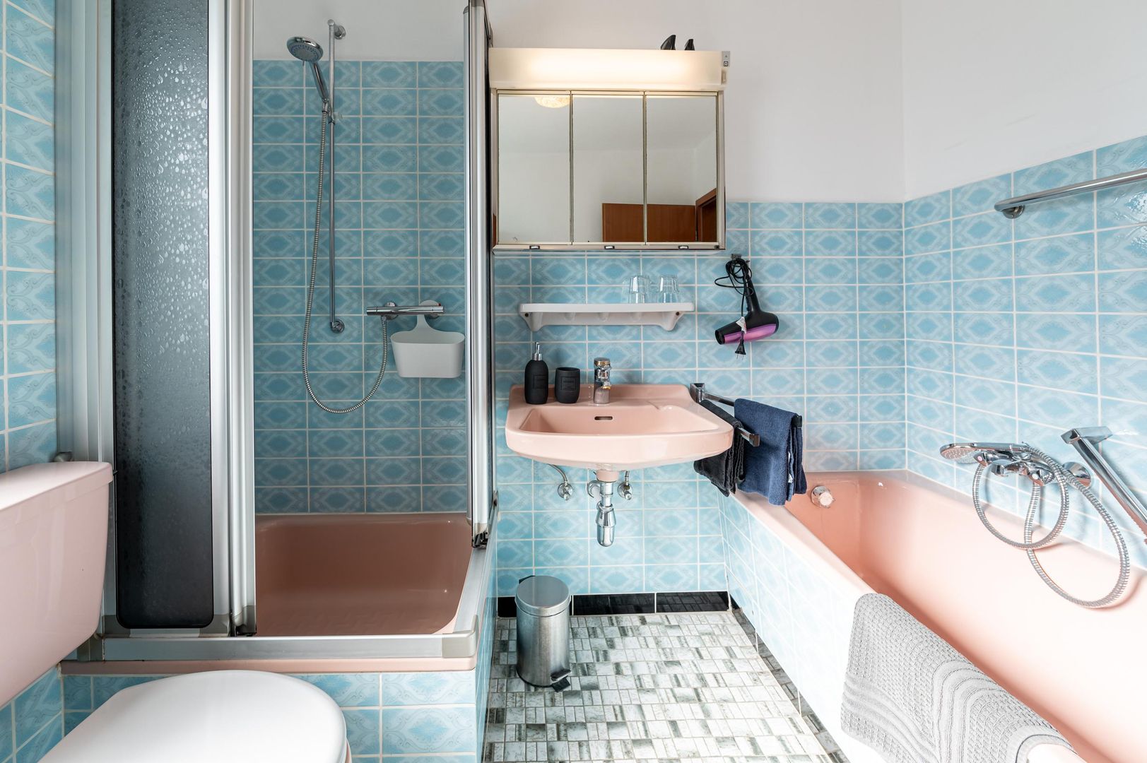 - Badkamer bad met douche, bad, wastafel, toilet