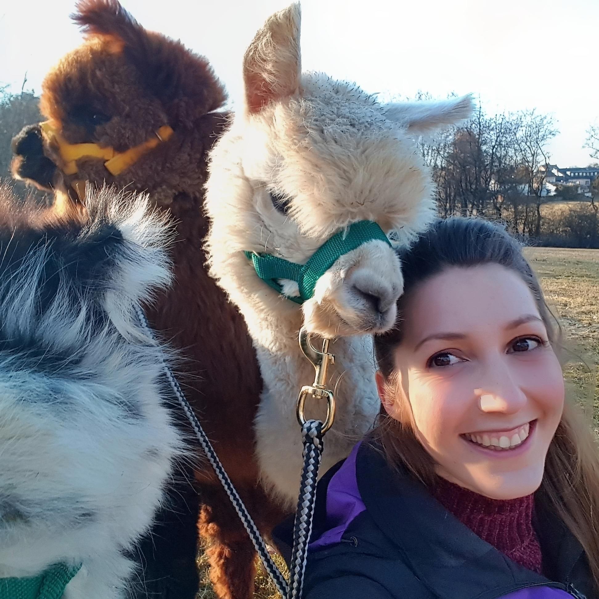 • Gesamt ca. 4h (ggf. etwas länger, je nach Lauftempo) • Kennenlernen der Tiere, Start & Ende der Wanderung bei uns am Hof • Jede Wanderung wir von Mara begleitet • Wanderstrecke: durch Wald & Wiesen oder am Nürburgring/Eifeldorf vorbei • Mindestteilnehmeranzahl: 3 Personen, die jeweils ein Alpaka/Lama führen • Pro Alpaka-/Lama-Führer:in ist eine weitere Begleitperson herzlich willkommen 66 EUR pro Person, die ein Alpaka/Lama führt 33 EUR pro Begleitperson, die kein Alpaka/Lama führt ab dem 5. Alpaka/Lama 59,00 EUR pro jedes weitere Tier ab der 5. Begleitperson 30 EUR pro jede weitere Begleitperson Interesse den Tag nach der Wanderung bei den Alpakas und Lamas ausklingen zu lassen? Ausklang nach der Wanderung • Gemütlicher Ausklang auf der Alpaka-/Lamakoppel ca. 2:00 Stunden (Kürzer oder länger ist auch möglich) • Auf Wunsch Getränke & Speisen zur Wahl auf Bestellung bei einer regionalen Lokalität. Preise auf Anfrage