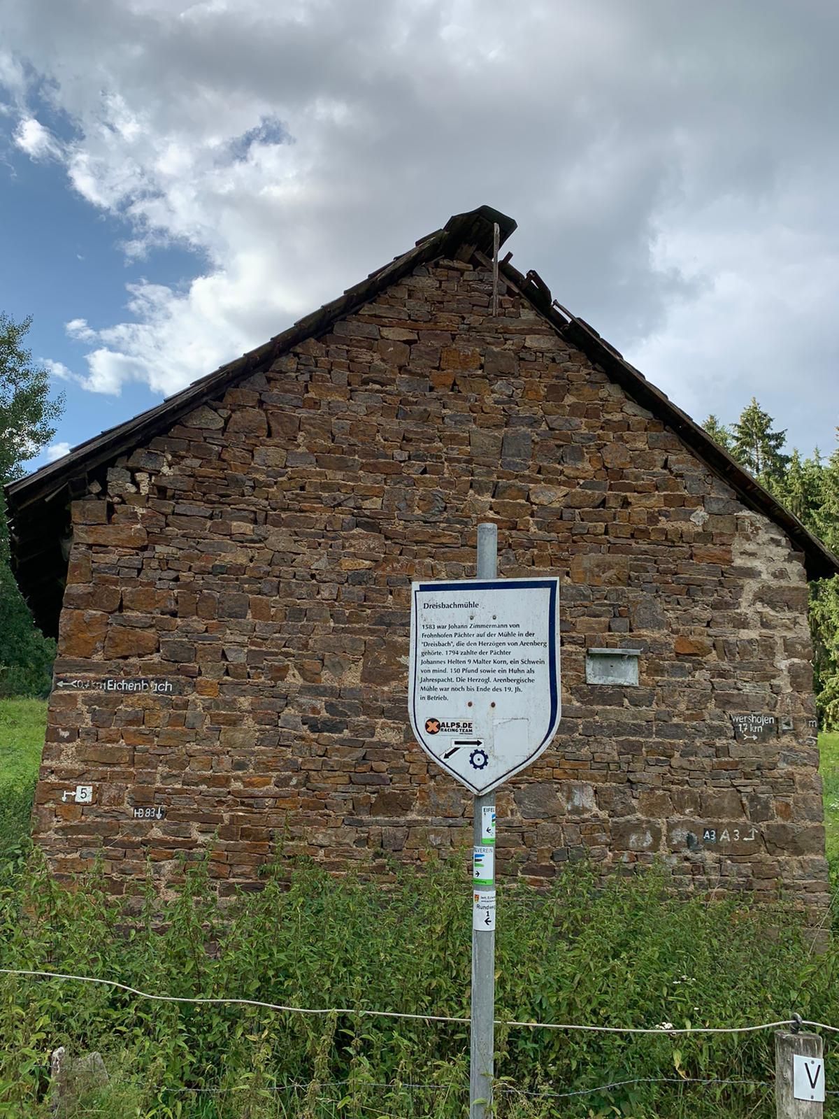 Die historische Mühle befindet sich im romantischen Dreisbachtal und ist Wegepunkt vieler wunderbarer Wanderrouten.