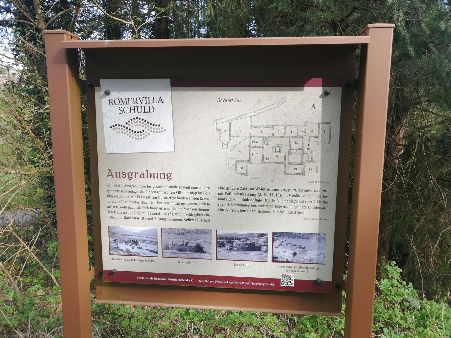 Die Villa rustica wurde im 1. Jahrhundert n. Chr. errichtet und war Münzfunden zufolge bis zur Mitte des 4. Jahrhunderts bewohnt. Vor Ort installierte Infotafeln erzählen anschaulich die historischen Hintergründe, da die Fläche heutzutage komplett zugewachsen ist. Viele der Fundstücke wie Mosaike und Tonkrüge sind heute ausgestellt in der Römervilla am Silberberg in Ahrweiler.