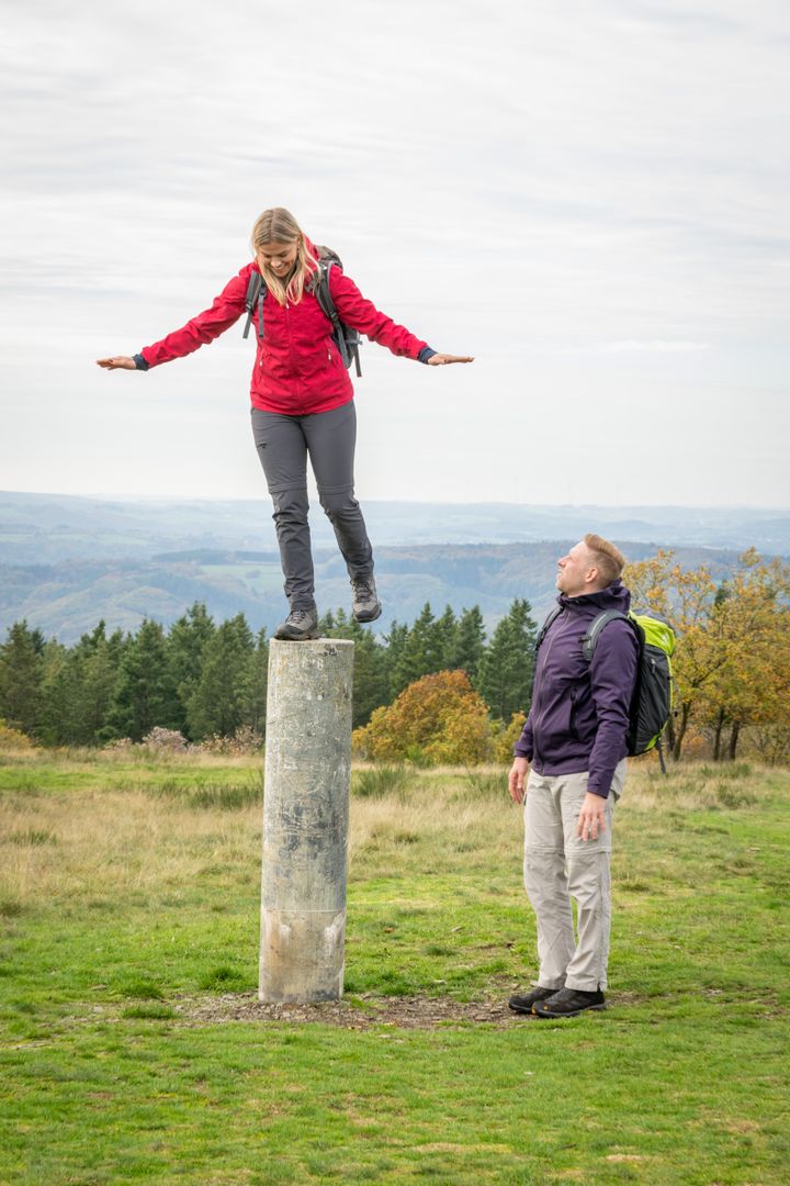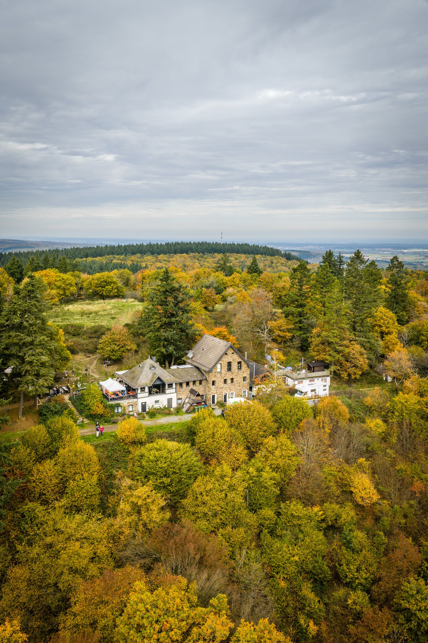 Der lange Aufstieg zum Gipfel wird mit herrlichen Ausblicken über das Ahrgebirge belohnt. Gleich am Gipfel lockt das Steinerberghaus – ein Stück alpines Hüttenfeeling auf den Ahrhöhen mit herzhaften Spezialitäten.