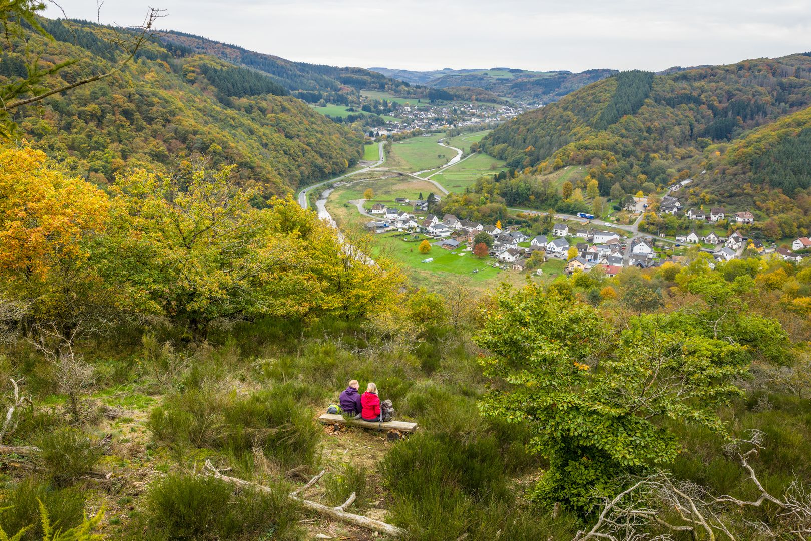 Der Abstieg nach Kesseling führt vorbei an Wacholderheiden und eröffnet immer wieder weite Blicke ins Tal. Auf dem idyllischen Weg entlang des Kesselinger Bachs zeigt sich die Landschaft von ihrer sanften Seite, bevor ein kurzer, knackiger Anstieg zur Silvesterhütte bei Ahrbrück fordert. Den stimmungsvollen Schlusspunkt setzt der schmale Felsenpfad mit seiner aussichtsreichen Gratpassage über den Mühlenberg – ein würdiges Finale einer abwechslungsreichen Wanderung.