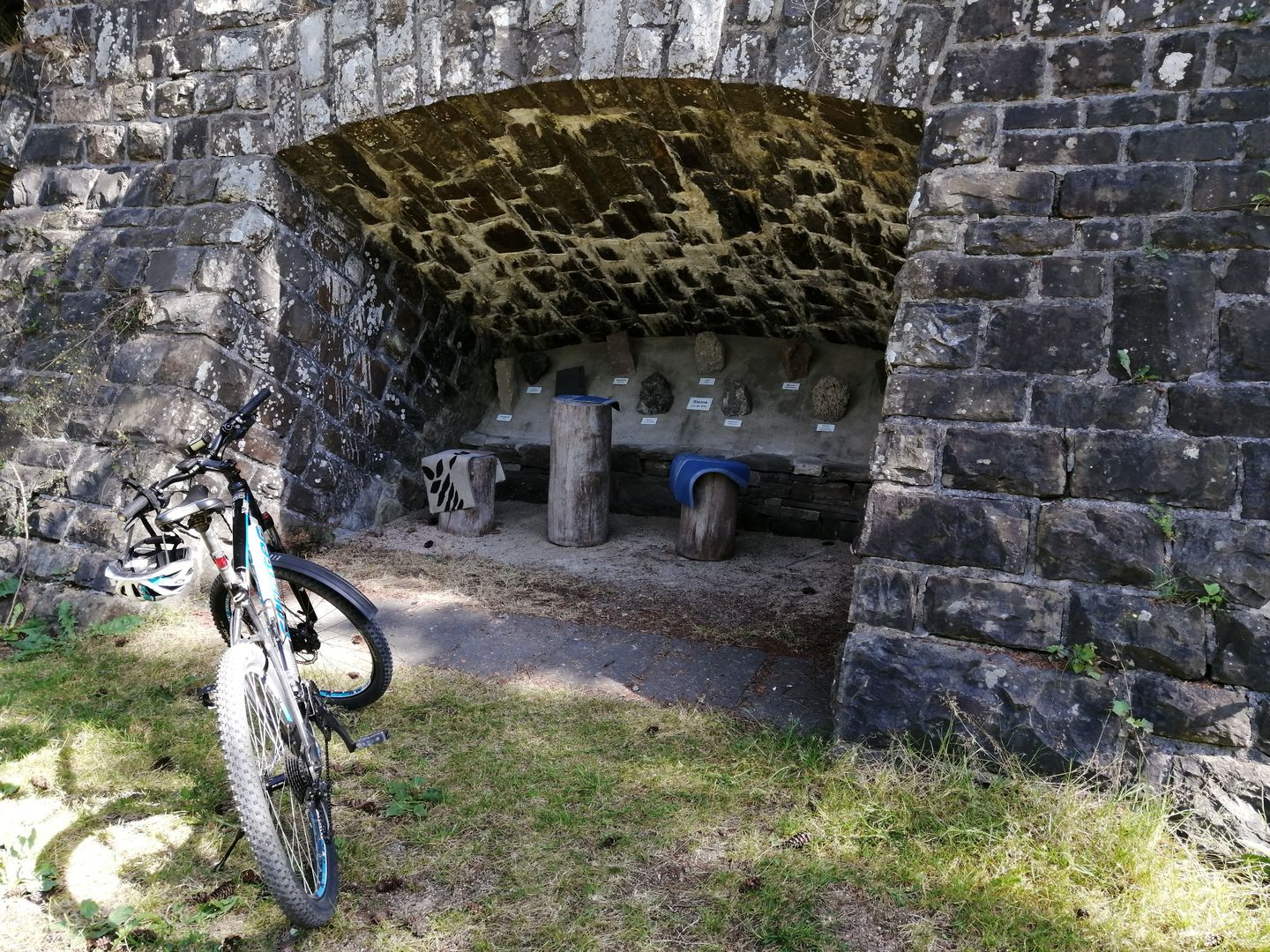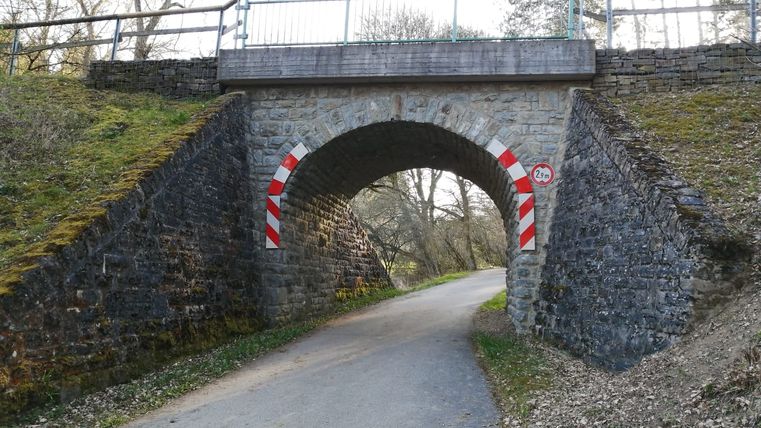 Immer wieder erscheinen charakteristische Merkmale der ehemaligen Bahntrasse: Infotafeln zur Historie der Ahrtalbahn, alte steinerne Stützmauern mit gemütlichen Nischen, die zur Rast einladen, die malerischen ehemaligen Bahnhofsgebäude und sogar ein altes Doppelsignal säumen den Weg.