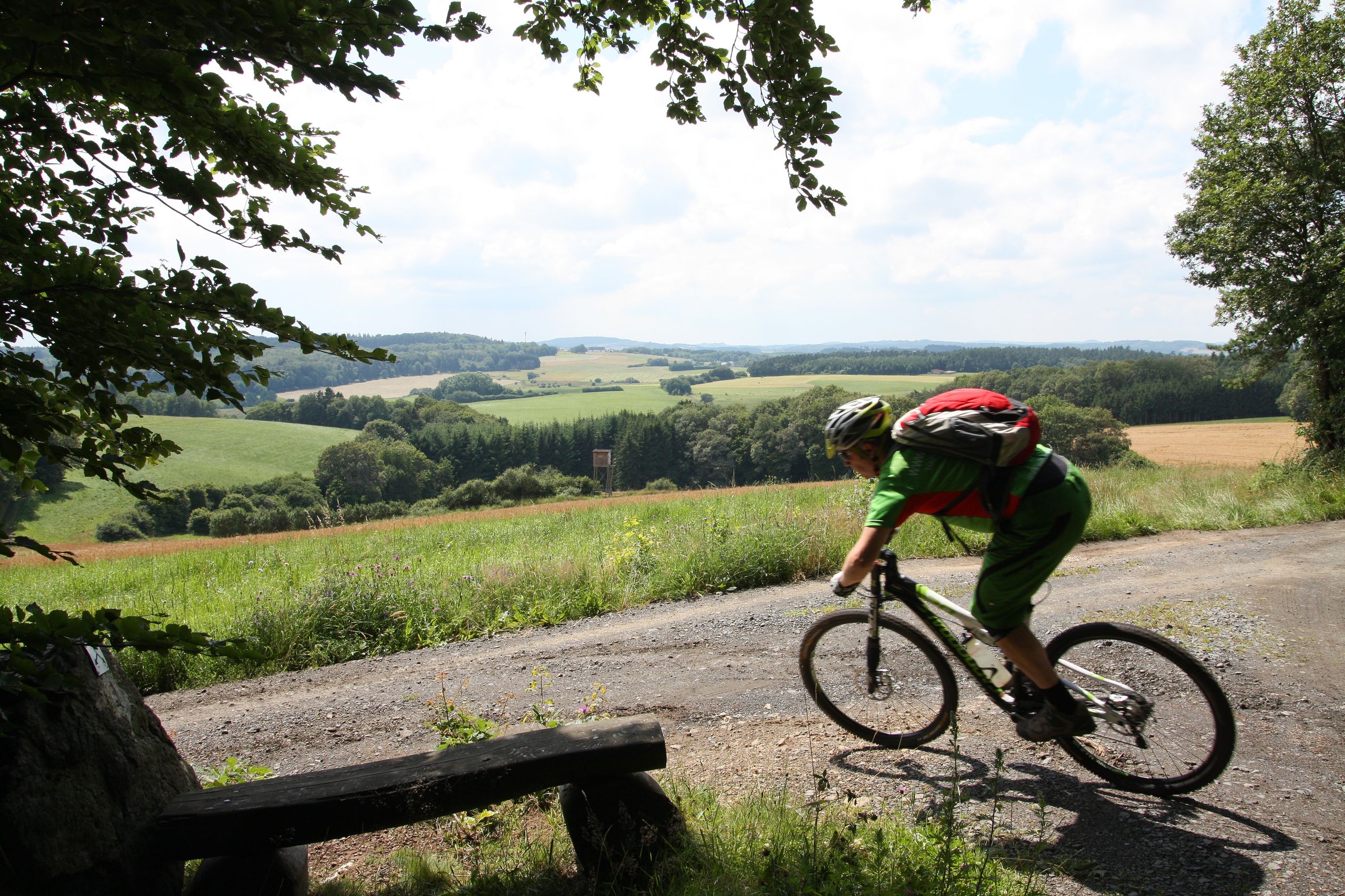 Startend im beschaulichen Hocheifelort Hoffeld streift die gut ausgeschilderte Route auf einer kurzen Abwärtsfahrt das Ahrtal in Müsch, um dann wenige Zeit später erst sanft, dann fordernder am Bachlauf des Trierbachs stetig bergan zum Höhenort Nürburg zu führen. Hier lohnt sich eine Besichtigung der Burgruine Nürburg, die schon von Weitem klar erkennbar auf einer vulkanischen Bergkuppe thront. Bei einem Abstecher zum legendären Nürburgring kann ein wenig Rennluft geschnuppert werden.