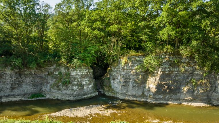 Ein weiteres Highlight der Tour erwartet den Wanderer ein Stück weiter: Das Naturdenkmal "Prümer Tor", eine beeindruckende Felsspalte, die sich in Millionen Jahren durch die Kraft des Wassers gebildet hat. Es lädt zu einer Pause ein und der Möglichkeit der Erfrischung durch ein Fußbad in der Ahr. Folgt man dem AhrSteig weiter, gelangt man wieder zurück zum Ausgangspunkt Schuld.