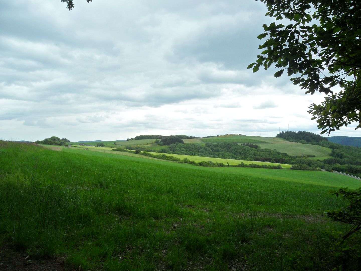 Auf der rechten Seite ist die „Dümpelhard“ mit seinen zwei Sendetürmen zu sehen. Während wir nun weiter in Richtung Sierscheid wandern kann man auch rechts in der Ferne die Nürburg gut erkennen.