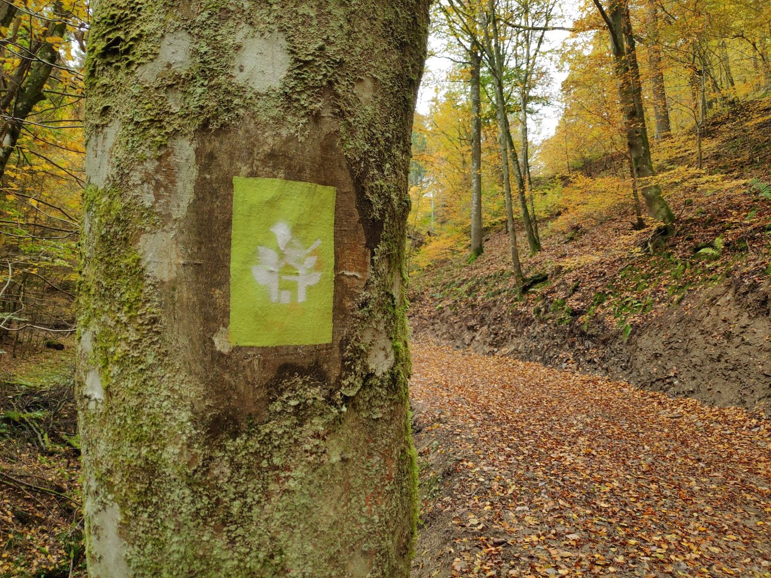 4. Unterwegs unter den ursprünglichen Weihnachtsbäumen: Während wir auf diesem Abschnitt unter den mächtigen Stämmen alter Buchen wandeln mogeln sich hier und da ein paar ebenso mächtige Nadelbäume dazwischen. Es handelt sich um die Weißtanne, die ein echtes Urgestein in deutschen Wäldern ist und sich in Gesellschaft von Buchen äußerst wohl fühlt. Mit der Zeit wurde unser ehemals traditioneller Weihnachtsbaum durch die Fichte ersetzt und ist heute in dieser Größe nur noch selten im Wald zu finden.