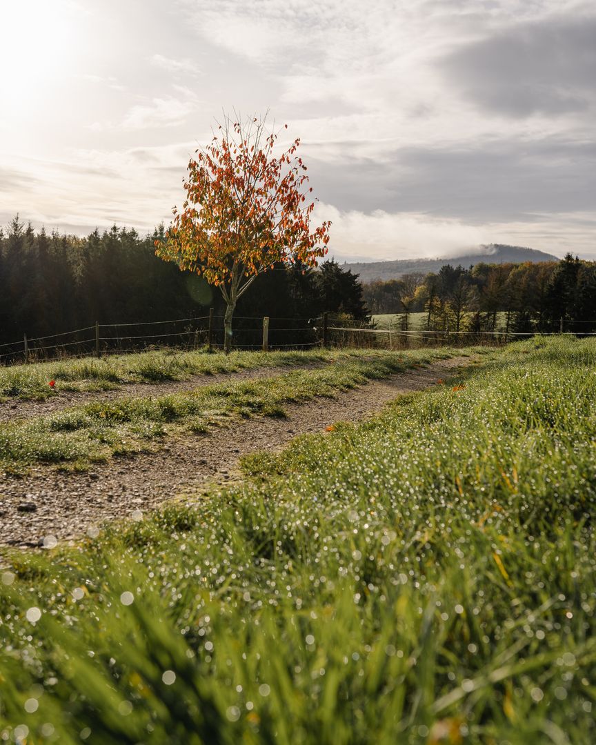 2. Idyllische Überreste alter Streuobstgärten: Bevor wir das beschauliche Dorf Wershofen langsam hinter uns lassen, um in die weitläufigen Wälder einzutauchen ist der Weg gesäumt von den Überresten alter Streuobstgärten. Die betagten Obstbäume mit ihren zahlreichen Furchen, Höhlen und einzigartig gewachsenen Ästen, die ruhig auf den saftig grünen Hügeln stehen, offenbaren einen malerischen Anblick.