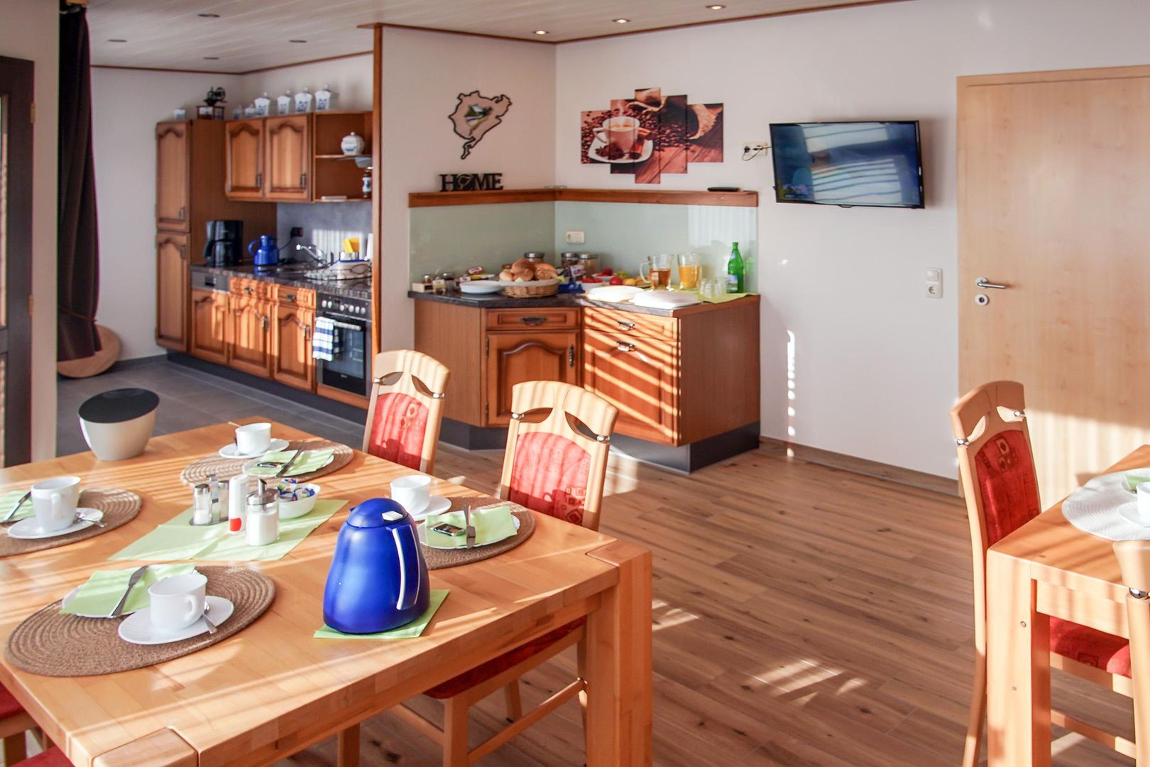 Gerne können Sie in unserem Frühstücks- und Aufenthaltsraum auch einen erlebnisreichen Tag ausklingen lassen. Die gesamte Einrichtung ist liebevoll gestaltet, damit Sie sich bei uns wohlfühlen.