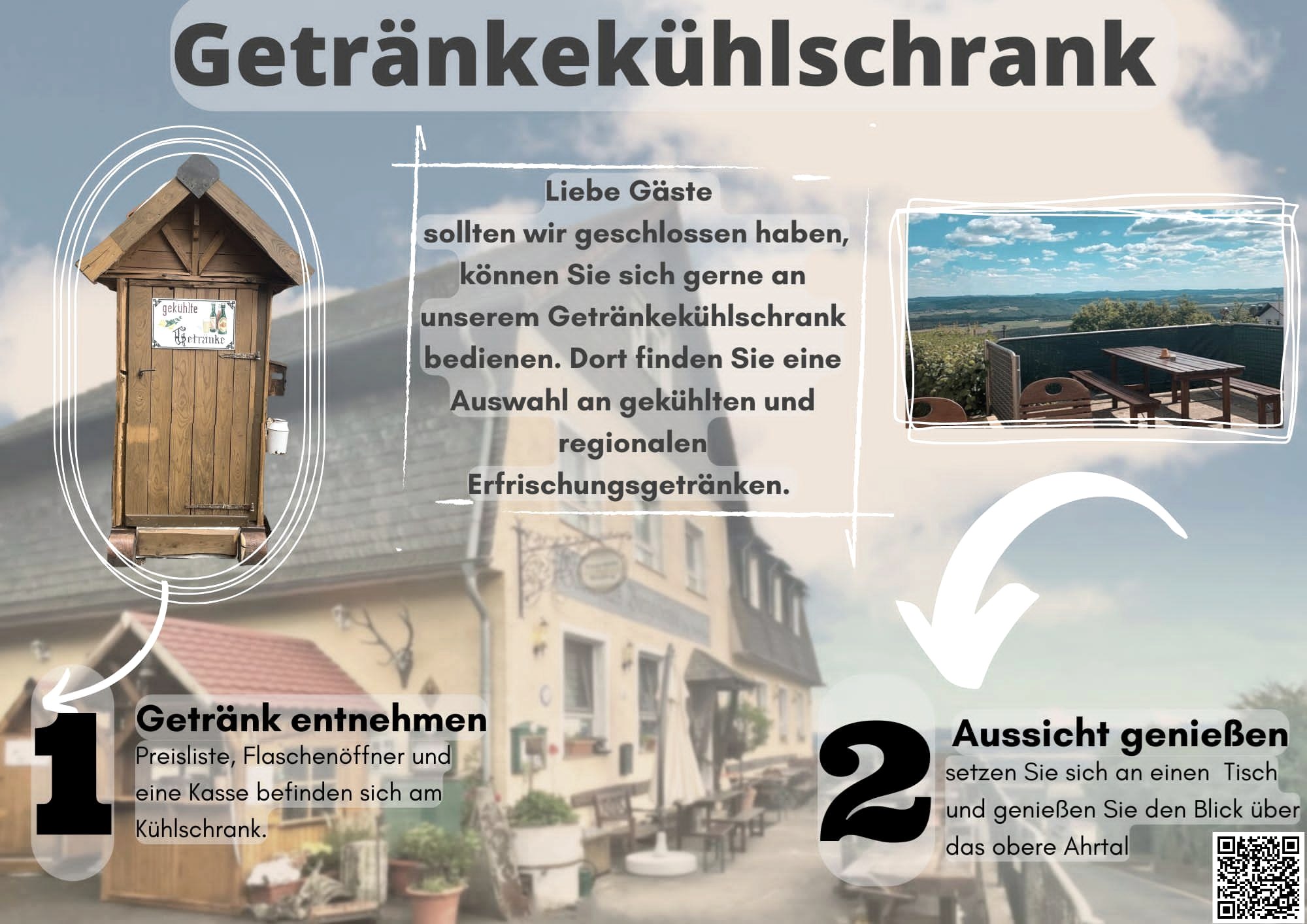 Auch außerhalb der Öffnungszeiten können Sie die Aussicht mit einem kühlen Getränk genießen
