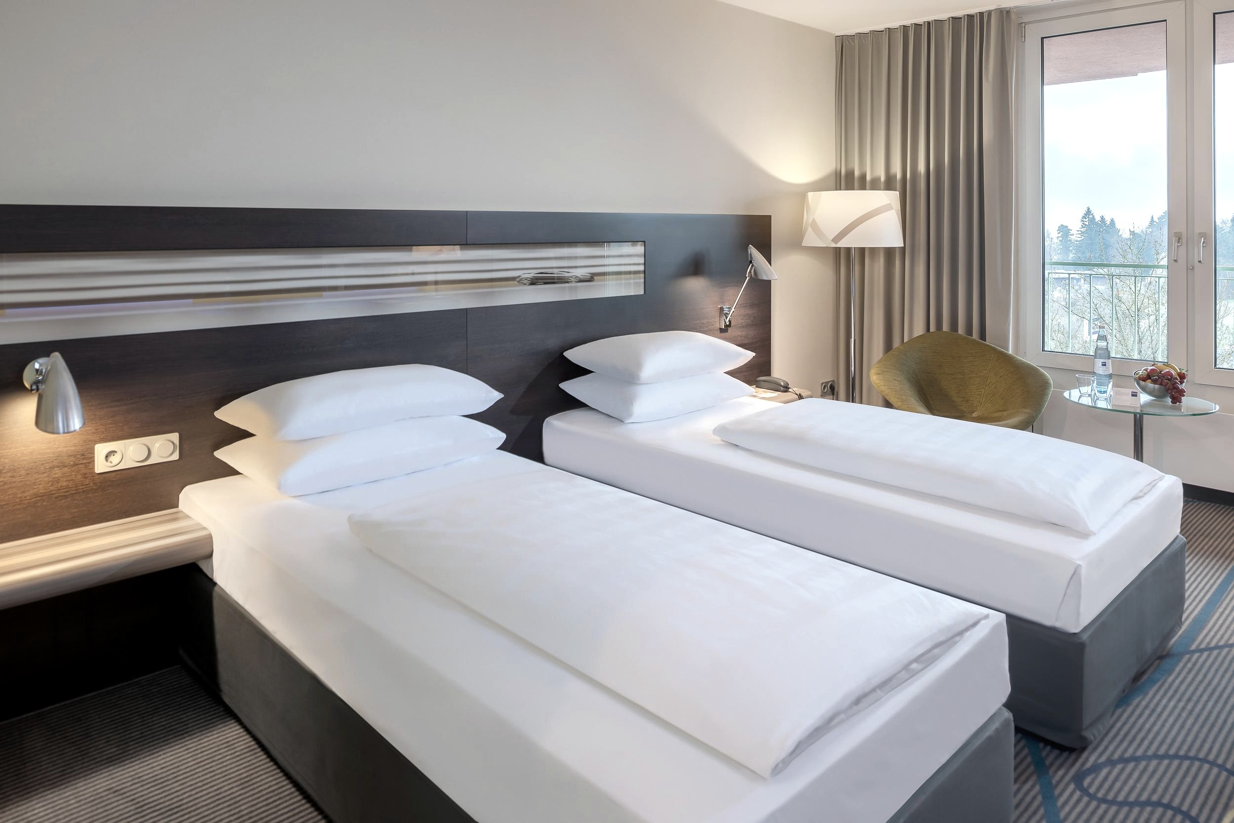 Geschmackvoll eingerichtet, bieten die 207 Zimmer einen grandiosen Ausblick auf die weltberühmte Rennstrecke oder auf die immergrüne Landschaft der Hocheifel.