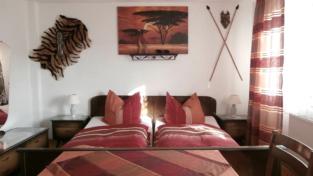 Hinter den Mauern eines ehemaligen Bauernhauses verbergen sich großzügig gestaltete Räume in denen es sich bis zu sieben Personen gemütlich machen können. Als klassisches Selbstversorgerhaus bieten unsere vier Themenzimmer einen ruhigen und erholsamen Schlaf. In der großzügigen Küche mit Essecke verweilen die Frauen bei einer Tasse Kaffee, während es sich die Männer im angrenzenden Jagdzimmer gemütlich machen. Der begrünte Innenhof lädt an lauen Sommerabenden zum Grillen und Feiern ein. Ein lauschiges Plätzchen auf der angrenzenden Liegewiese regt zum Träumen an. Parkmöglichkeiten stehen direkt am Haus ausreichend zur Verfügung.