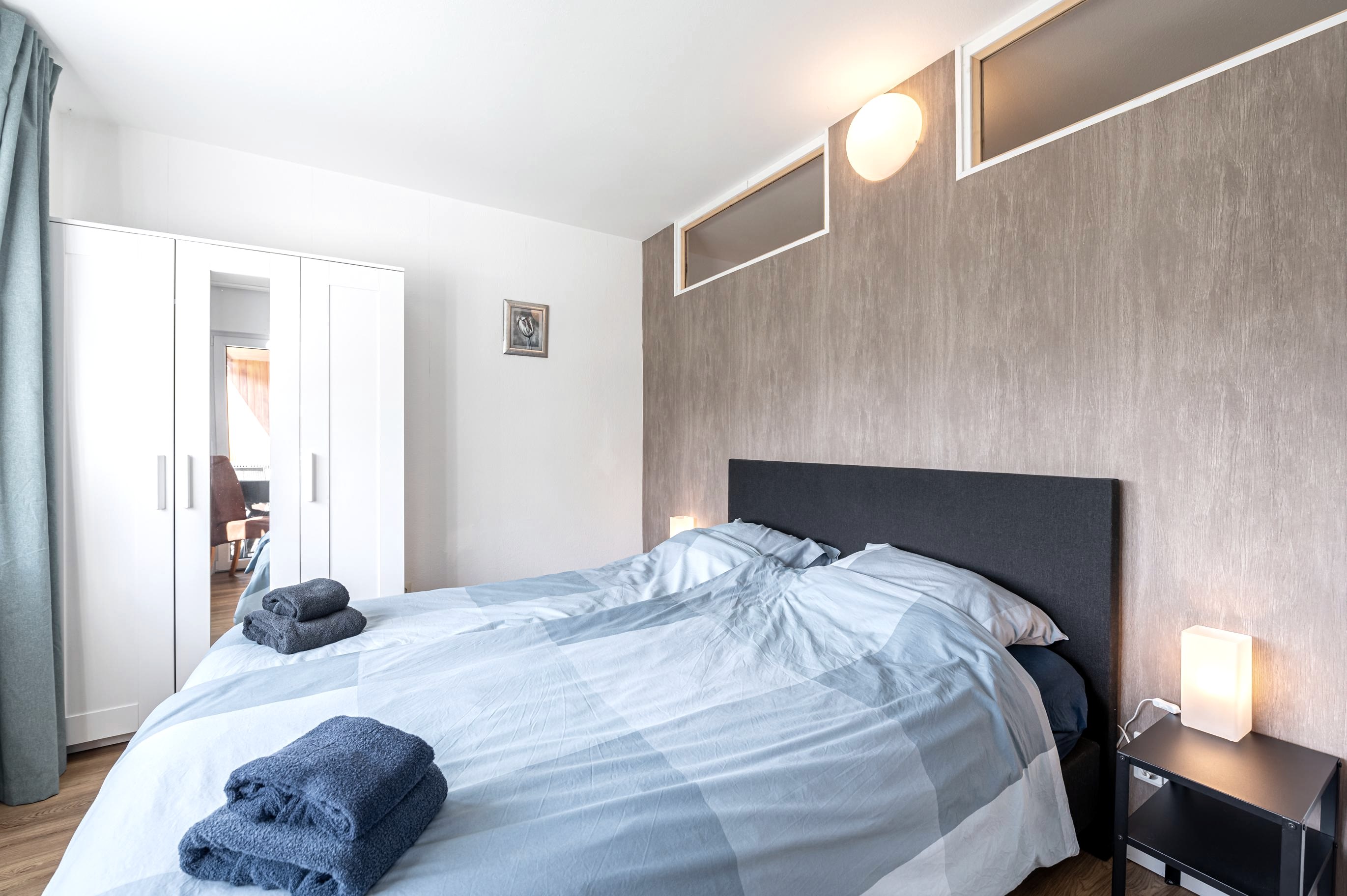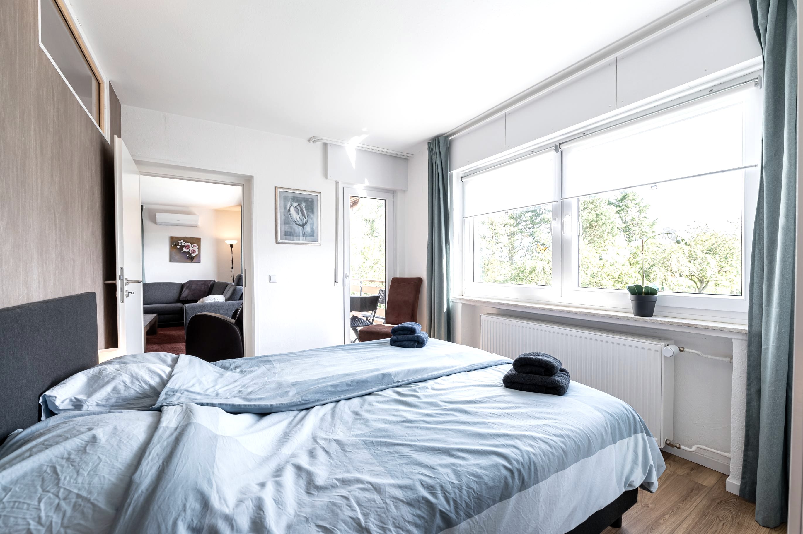 Eigener Parkplatz | E-Bikes in der Garage parken und laden | Alle Räume sind verdunkelbar | 3 getrennte Schlafzimmer | Privater Garten mit Möbeln | Balkon mit schönem Blick auf Wiese und Dorf | Gäste-WC