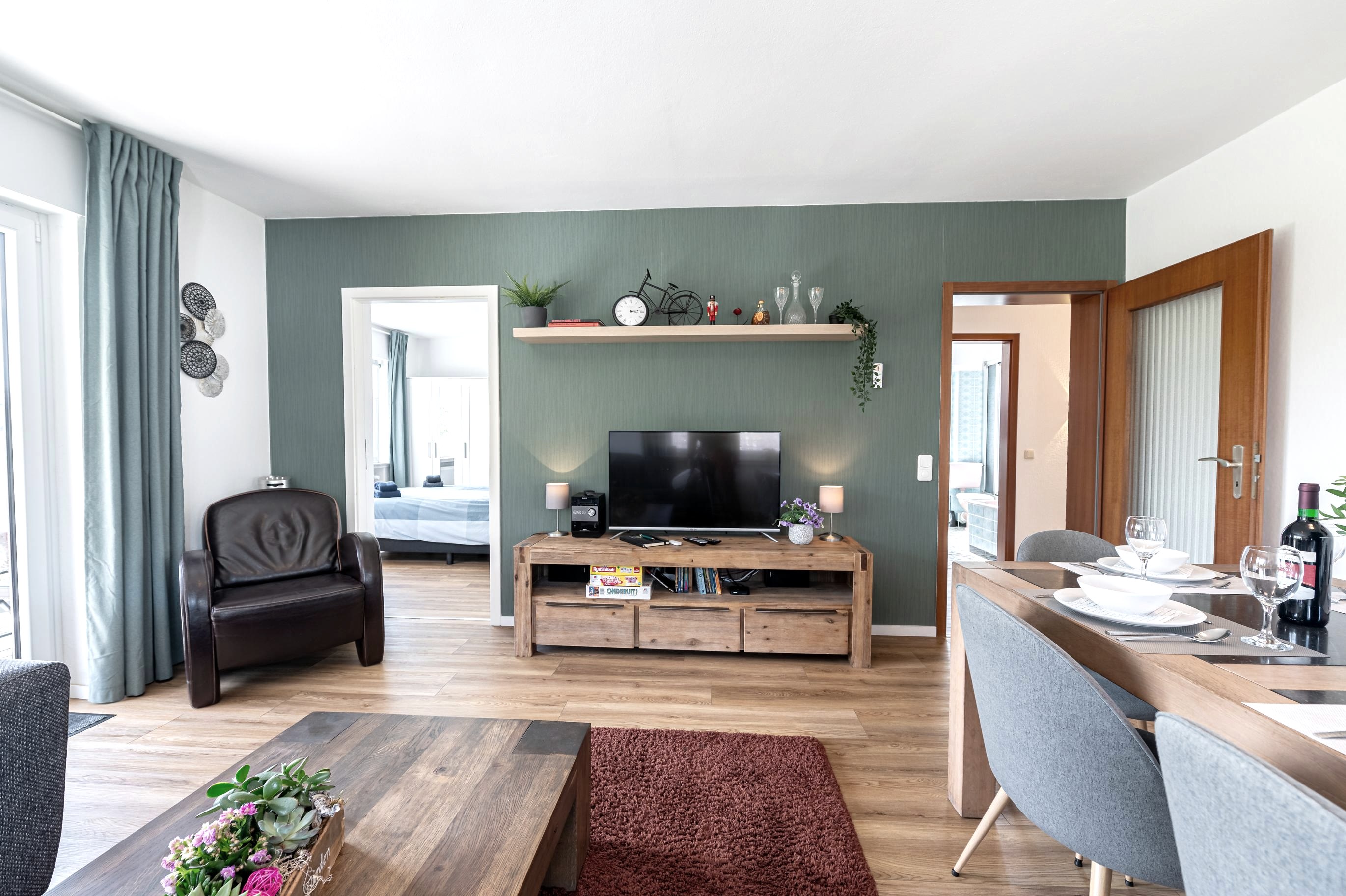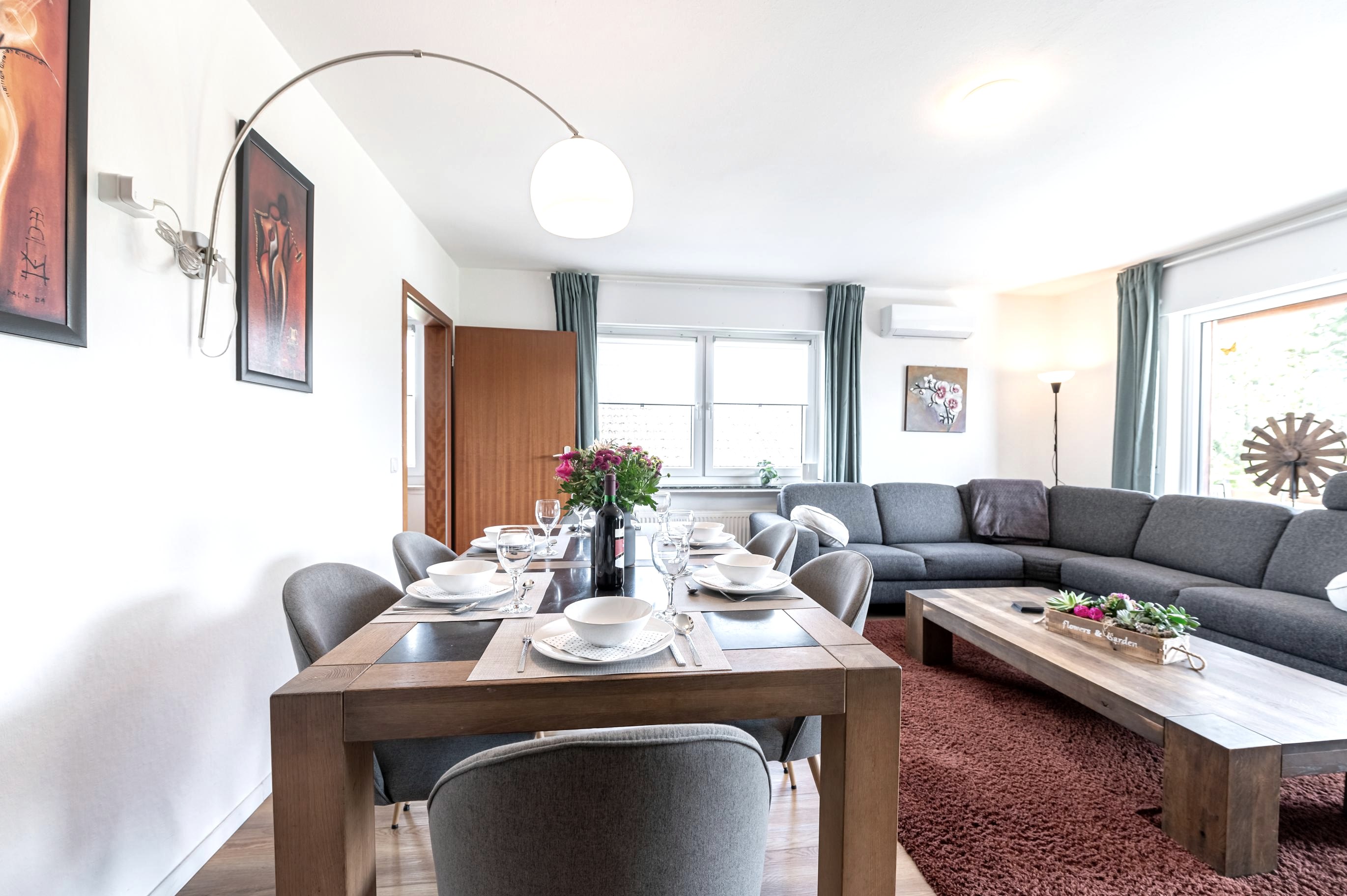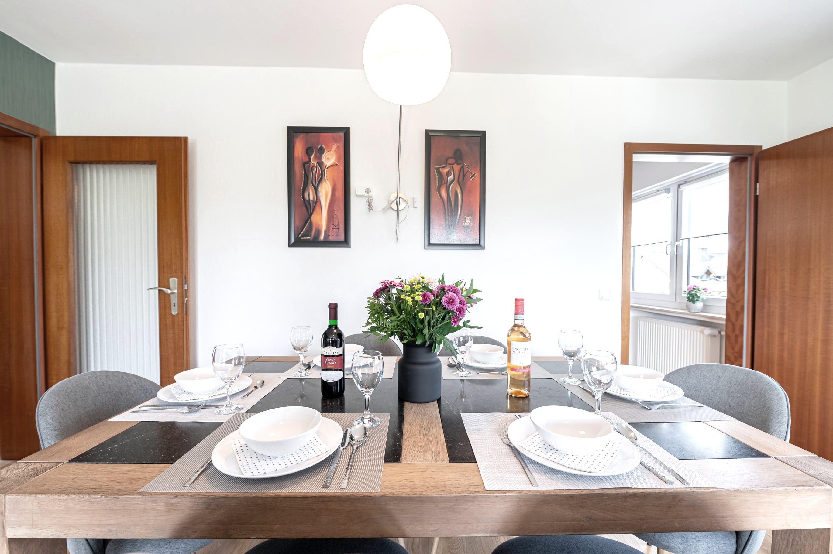 Im Wohnzimmer befindet sich eine Sitzecke mit Fernseher und einem großen Esstisch. Die geräumige Küche ist gut ausgestattet, von einem Geschirrspüler über eine Mikrowelle bis hin zu einem Wasserkocher, Senco, Durch 2 Eingänge (Wohnzimmer und Schlafzimmer) gelangt man auf den Balkon; hier hat man einen schönen Blick nach Nürburg. Die Wohnung verfügt außerdem über 3 separate Schlafzimmer, 1 Badezimmer mit Duschwanne, Badewanne und WC sowie ein zusätzliches Gäste-WC. . Ihr eigener Parkplatz ist für Sie reserviert. Das Haus liegt ruhig am Rande der Landschaft.