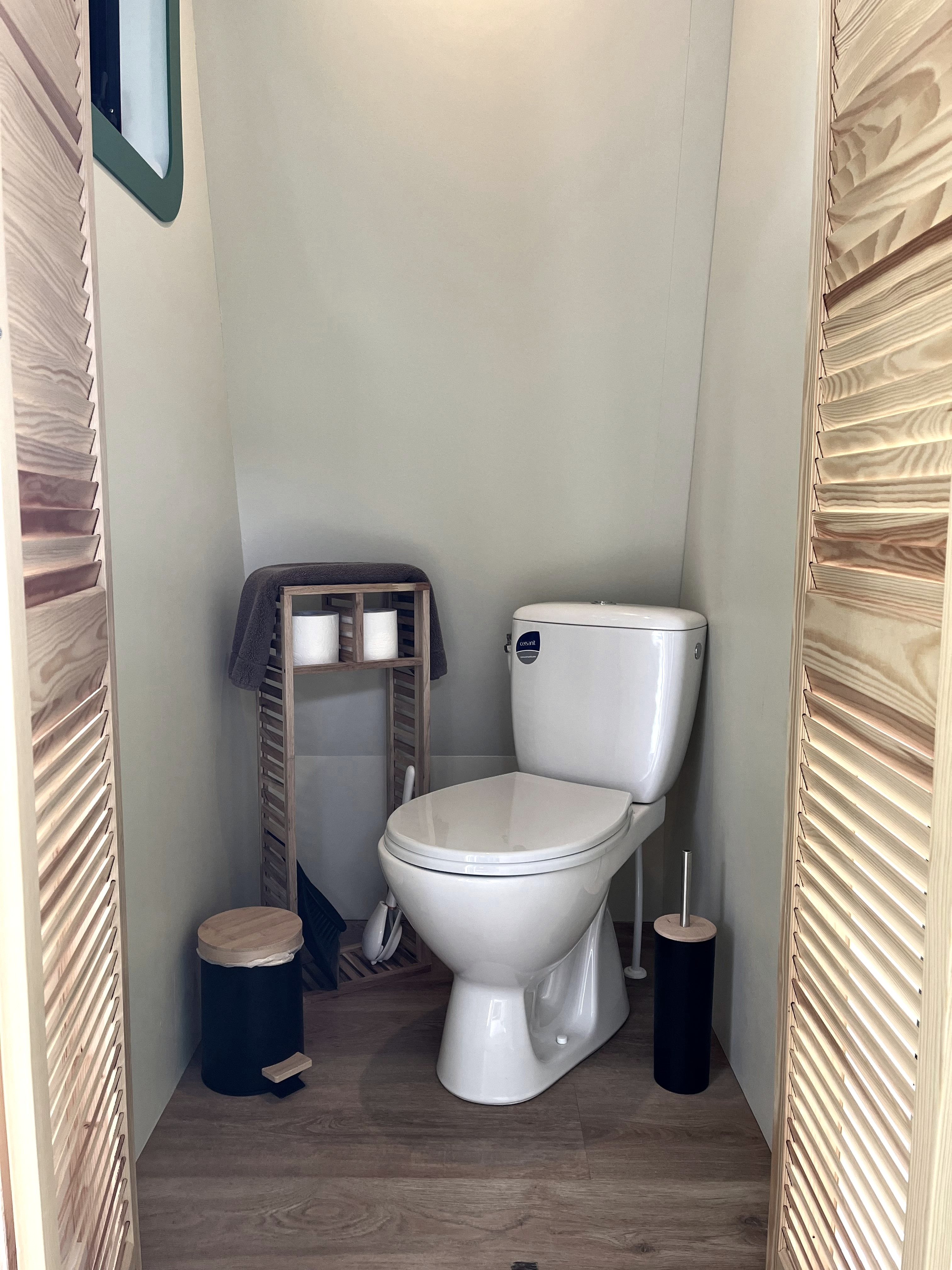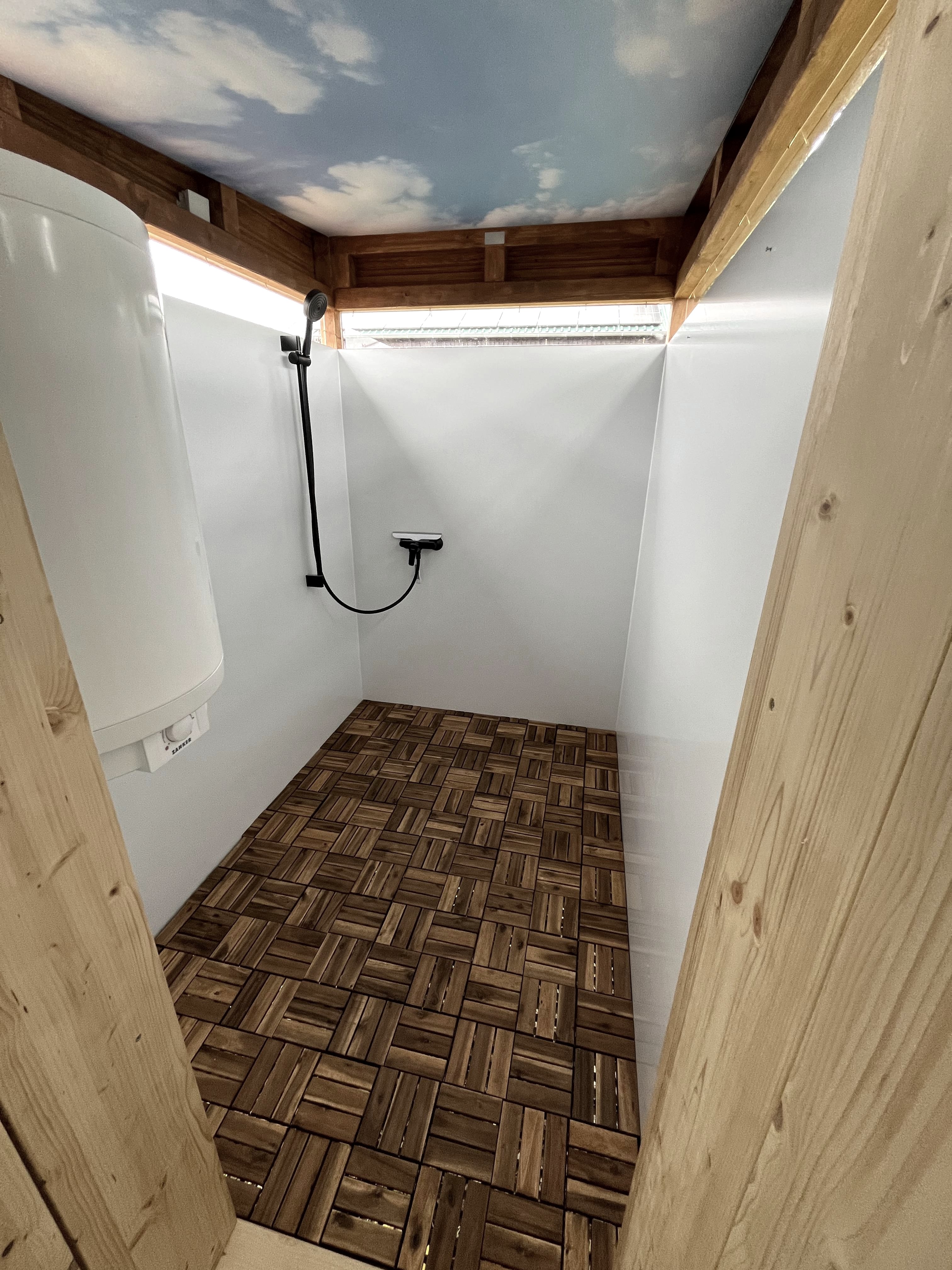 Für höchsten Komfort sorgt ein elektrischer Zahlencode, der eine Anreise zu jeder Zeit ermöglicht. Zudem stehen zwei PKW-Parkplätze direkt neben dem Tiny House zur Verfügung, was die Ankunft und Abreise besonders bequem gestaltet. Die Unterkunft verfügt zudem über einen Kühlschrank, ein Spülbecken, Besteck, Teller und Servietten.