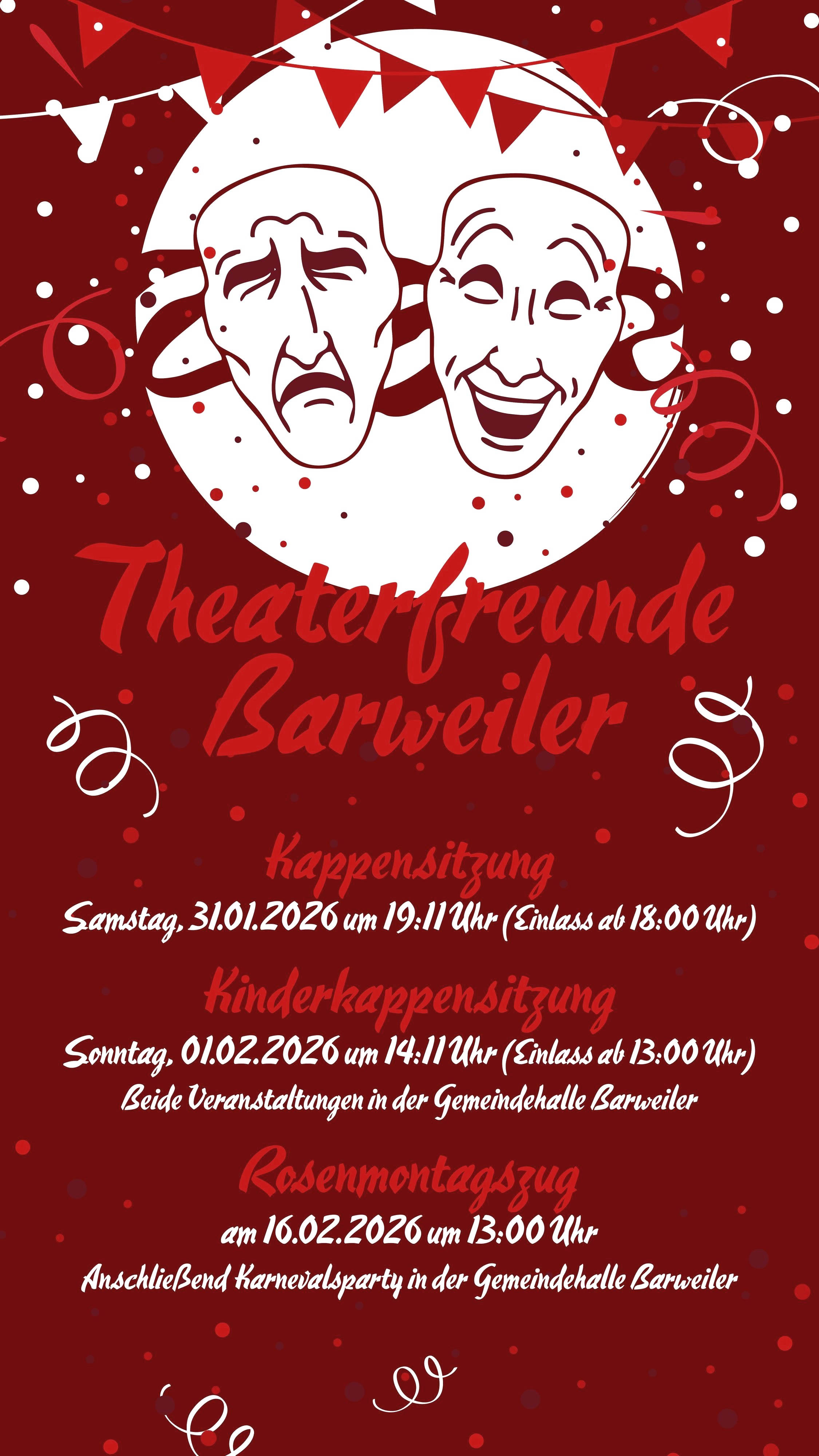 Die Theaterfreunde Barweiler laden herzlich zu ihren bunten Karnevalsveranstaltungen ein!