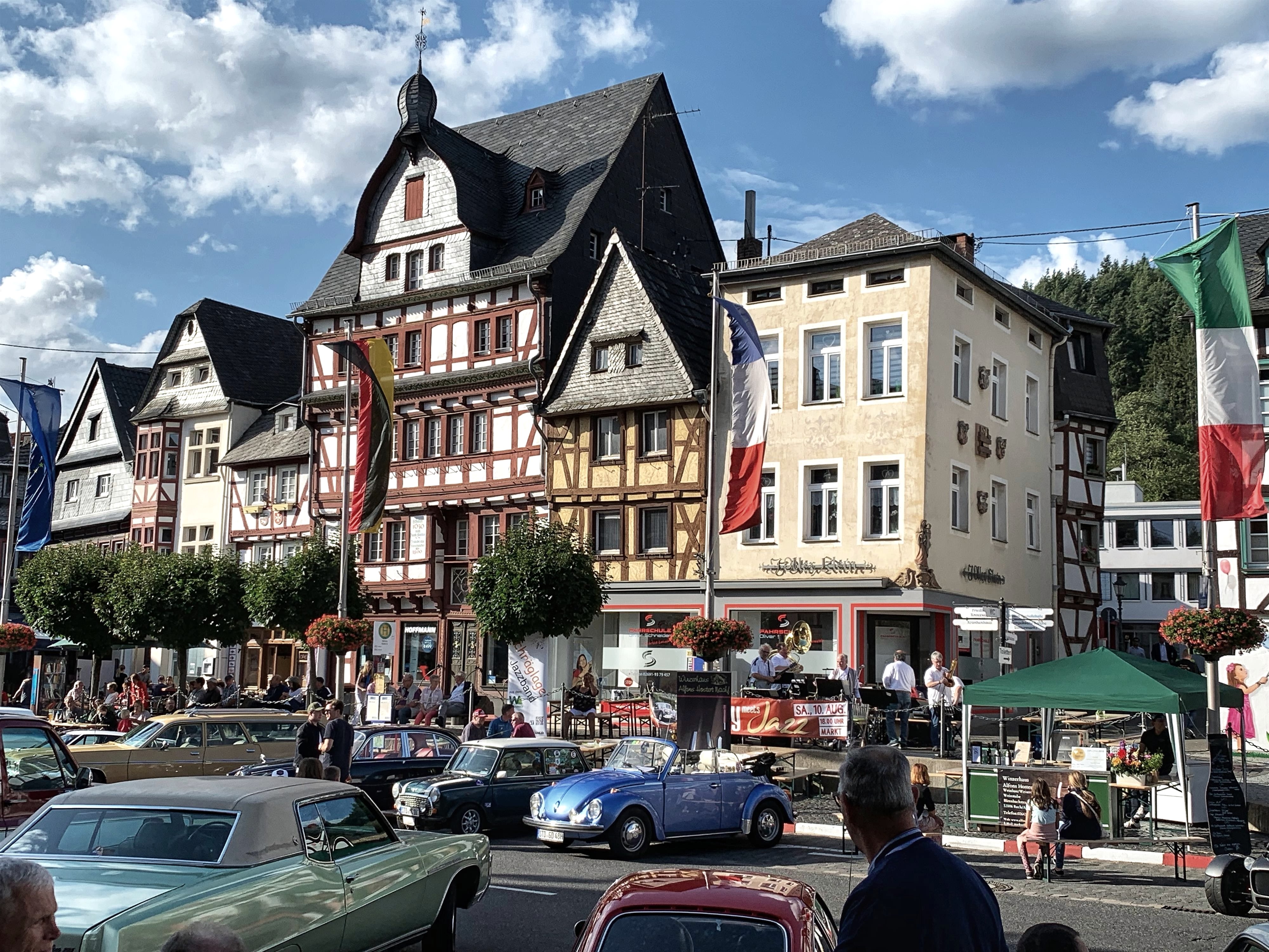 Eine Mischung der besonderen Art erwartet Sie bei „Oldy meets Jazz“ in Adenau. Im Rahmen des BELMOT-Oldtimer-Grand Prix am Nürburgring verwandelt sich die Adenauer Hauptstraße rund um den historischen Marktplatz in ein Oldtimermuseum. Auf der für den Verkehr gesperrten Straße werden die Oldtimer standesgemäß durch die Innenstadt geleitet und dort geparkt, so dass sich Autoliebhaber die historischen Fahrzeuge ganz genau anschauen und diese bewundern können. Begleitet wird das besondere Oldtimer-Flair von Live-Jazz-Musik auf höchstem Niveau.