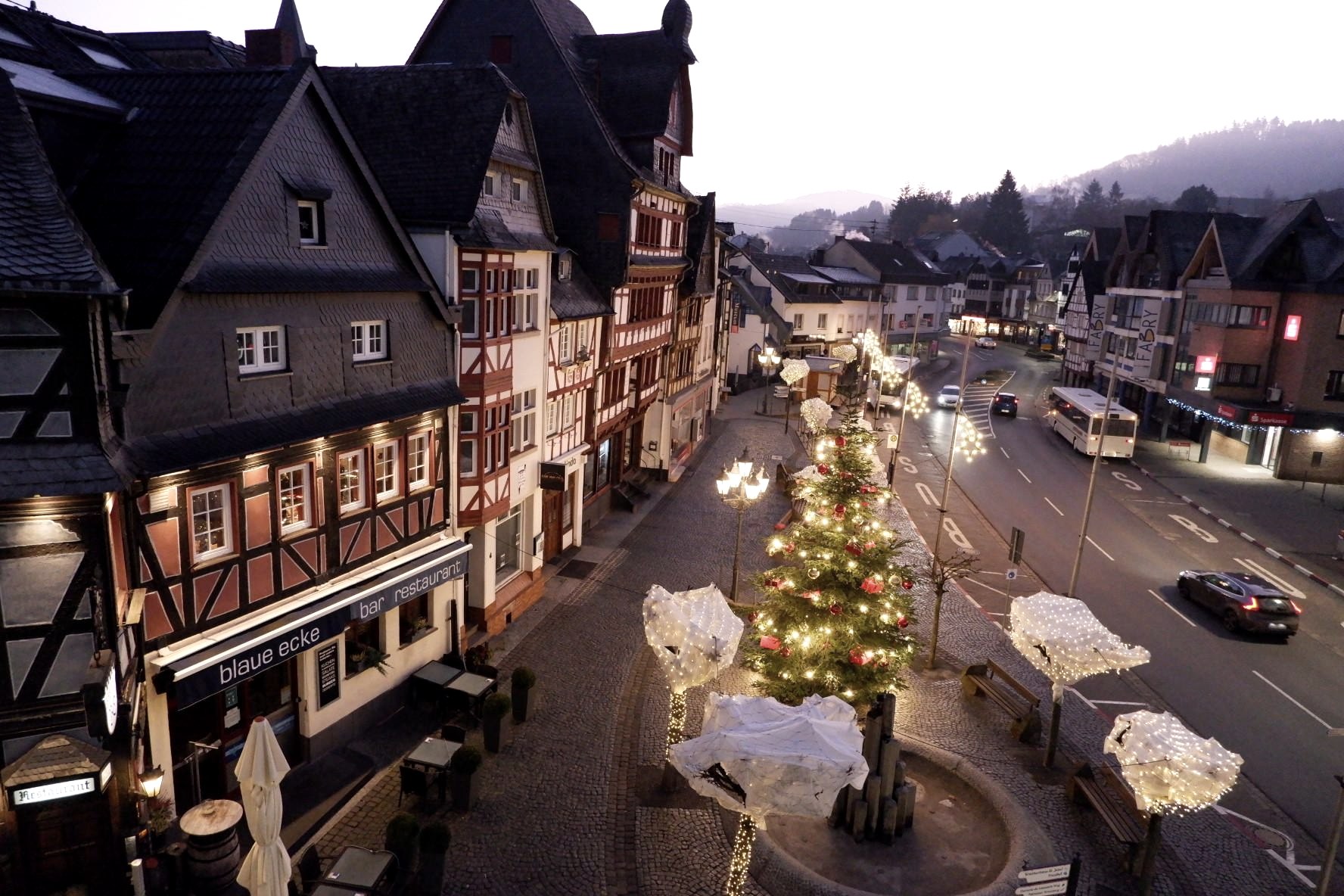 Weihnachten steht vor der Tür, die romantische Kulisse der alten Fachwerkhäuser am Markt in Adenau stimmt auf die besinnliche Weihnachtszeit ein. An allenn Adventswochenenden öffnet der Weihnachtsmarkt seine Türen. Die Besucher erwartet ein kleiner, feinen Weihnachtsmarkt mit Weihnachtsdekoration, Kulinarik, Glühwein und Punsch freuen. Die Gäste können, nach den Weihnachtseinkäufen in der Innenstadt, gesellige Stunden rund um den Weihnachtsbaum am historischen Marktplatz genießen. Wer mit dem Auto kommt, kann sich außerdem traditionell auf freies Parken in der Innenstadt an allen Adventssamstagen freuen.