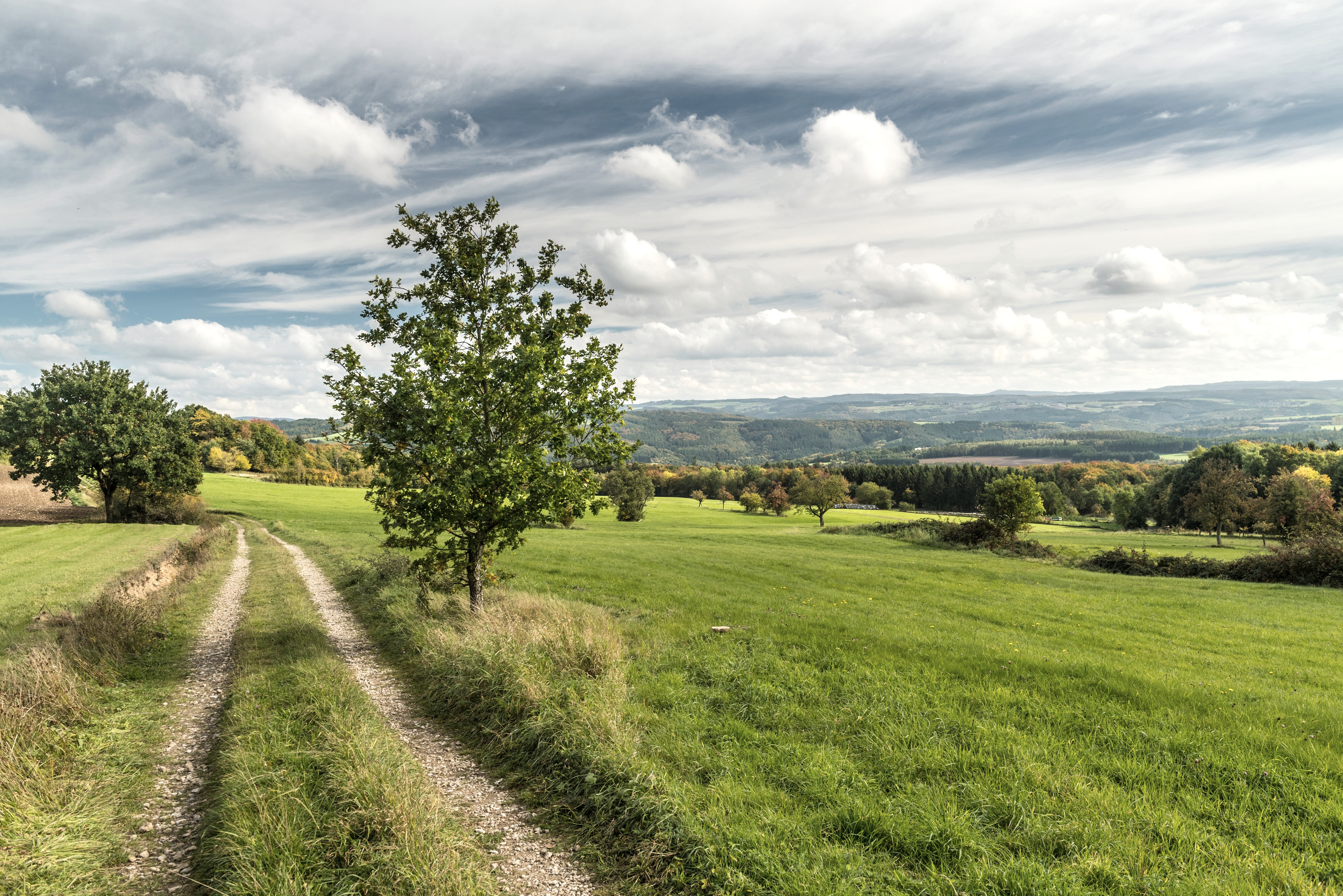 Von Freilingen kommend überqueren wir mit der nötigen Vorsicht die L115. Dahinter links, dann nach rechts und bergan im gemächlichen Anstieg auf den Hühnerberg, der schon von Weitem am großen Kreuz erkennbar ist. Von oben schweift der Blick über ein herrliches Rundum-Panorama. Nach erholsamer Rast wandern wir über die weite Hochfläche durch die Gemarkung Am Gericht.