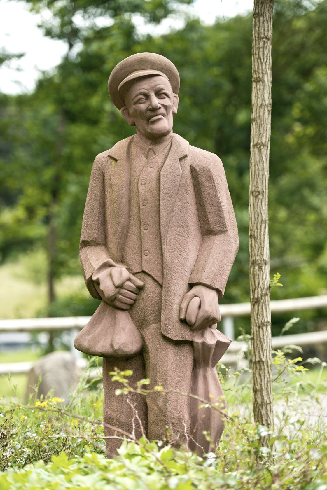 Über steile Waldpfade geht es schließlich hinab nach Eichenbach. Im kleinen Eifeldörfchen erinnert eine Sandsteinskulptur an das für seinen Humor bekannte Eifler Original Bläke Fritz. Vom Ortskern aus steigt der Weg nun steil an bis zur Eichenbacher Kapelle. An der Wegkreuzung halten wir uns rechts und erreichen den Höhenzug der Mertesnück. Die Wildblumenwiesen sind ein Paradies für Pflanzenkundler. Durch stille Wälder des Eichenbacher Forsts geht es hinab in das Dreisbachtal. Nach Überquerung der Ahr erreichen wir den kleinen Weiler Streitenau. Nun folgt ein knackiger Anstieg über versteckte Pfade zum spektakulärsten Abschnitt des gesamten AhrSteigs. Hoch über dem Ahrtal führt die Route über Felspassagen und entlang schroffer Sandsteinwände der Schulder Hardt ins idyllisch gelegene Örtchen Schuld. Es lohnt sich ein Abstecher zur etwas abseits des Orts liegenden, um 1700 erstmals erwähnten Schornkapelle. Die oberhalb von Schuld gelegene Freilichtbühne wartet seit Jahrzehnten mit bekannten Stücken wie „Dornröschen“ oder „Das Dschungelbuch“ auf.
