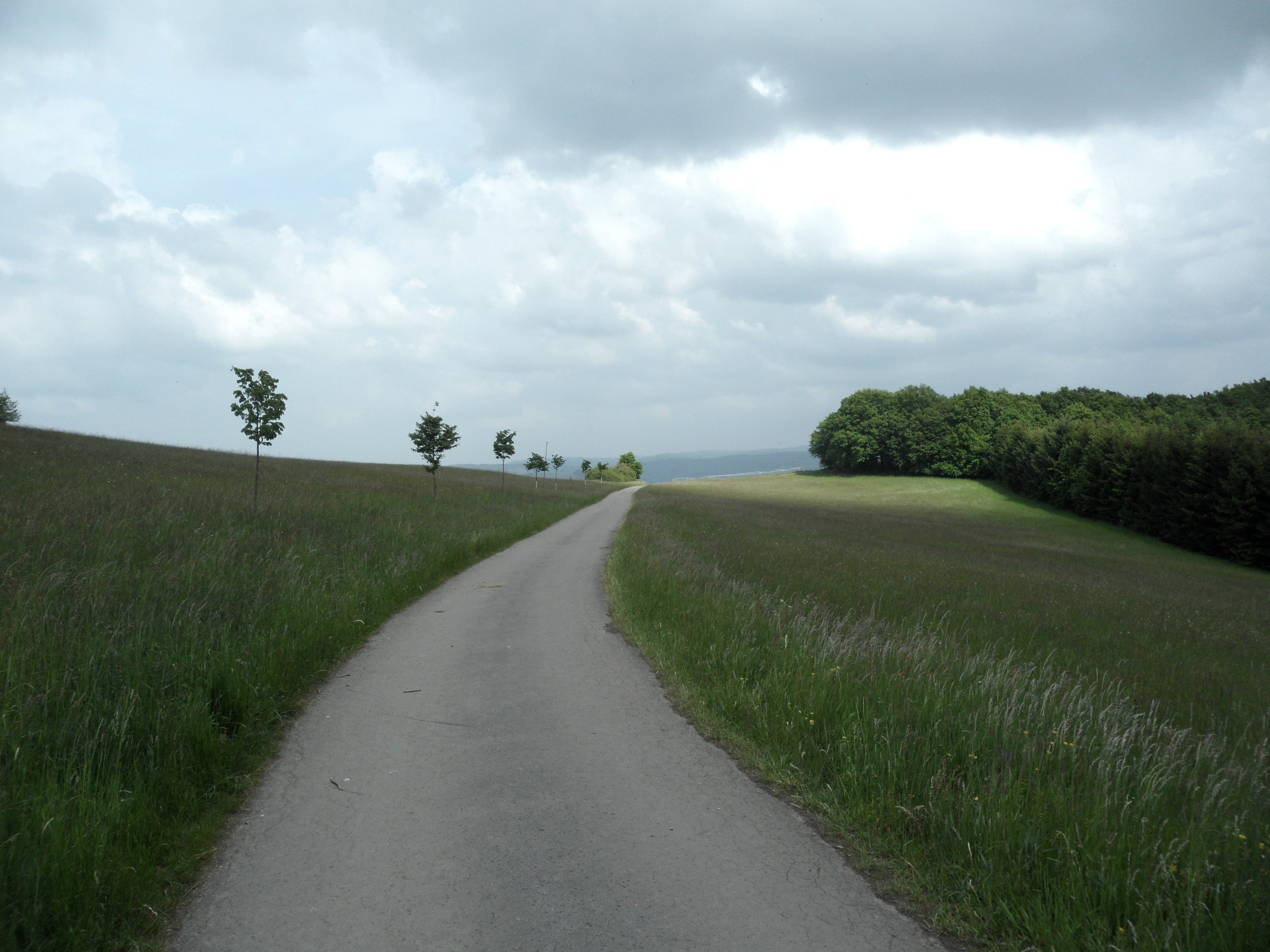 Nach einer ausgedehnten Rast verlassen wir die Kapelle und wandern dem Weg folgend ein Stück bergab bis zu einer Wegegabelung, wo wir auf einen geteerten Wirtschaftweg treffen. Wir wandern nach links und folgen dem Weg  einen Kilometer lang. Dort wo die geteerte Straße endet, gelangen wir an eine Wegekreuzung, die wir überqueren. Wir befinden uns nun auf einen Wiesenweg dem wir bergab, immer an der Wiese vorbei, folgen. Am Ende der Wiese, die von drei Seiten von Tannenwald eingeschlossen wird, lag früher der Kottenborner Hof. Hier biegen wir nach rechts ab und wandern, vorbei an einem Wildacker auf eine Wegekreuzung zu die wir geradeaus überqueren. Nun folgen wir dem Weg ins Tal hinab bis wir auf die Kreisstraße treffen, die nach Wershofen führt.